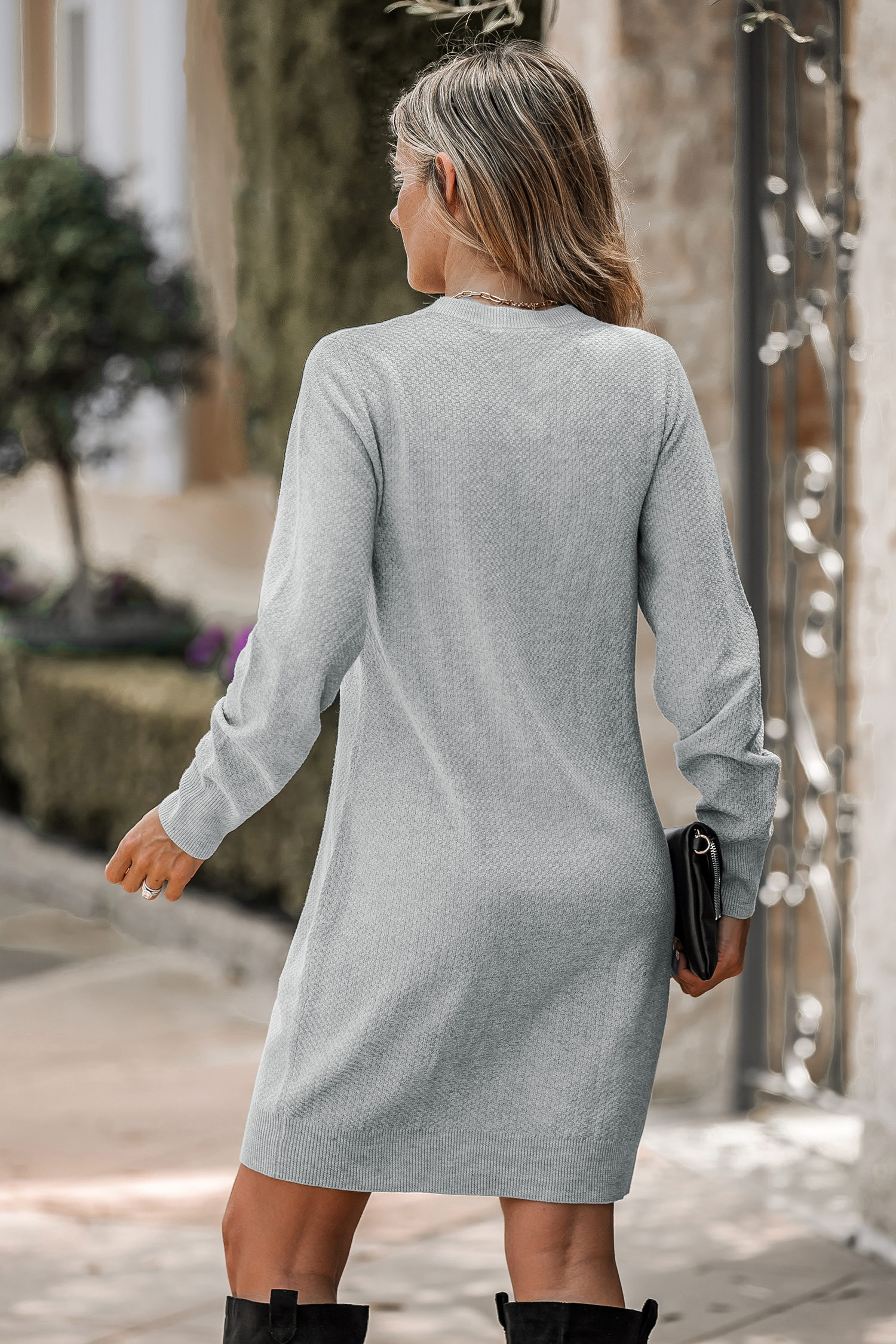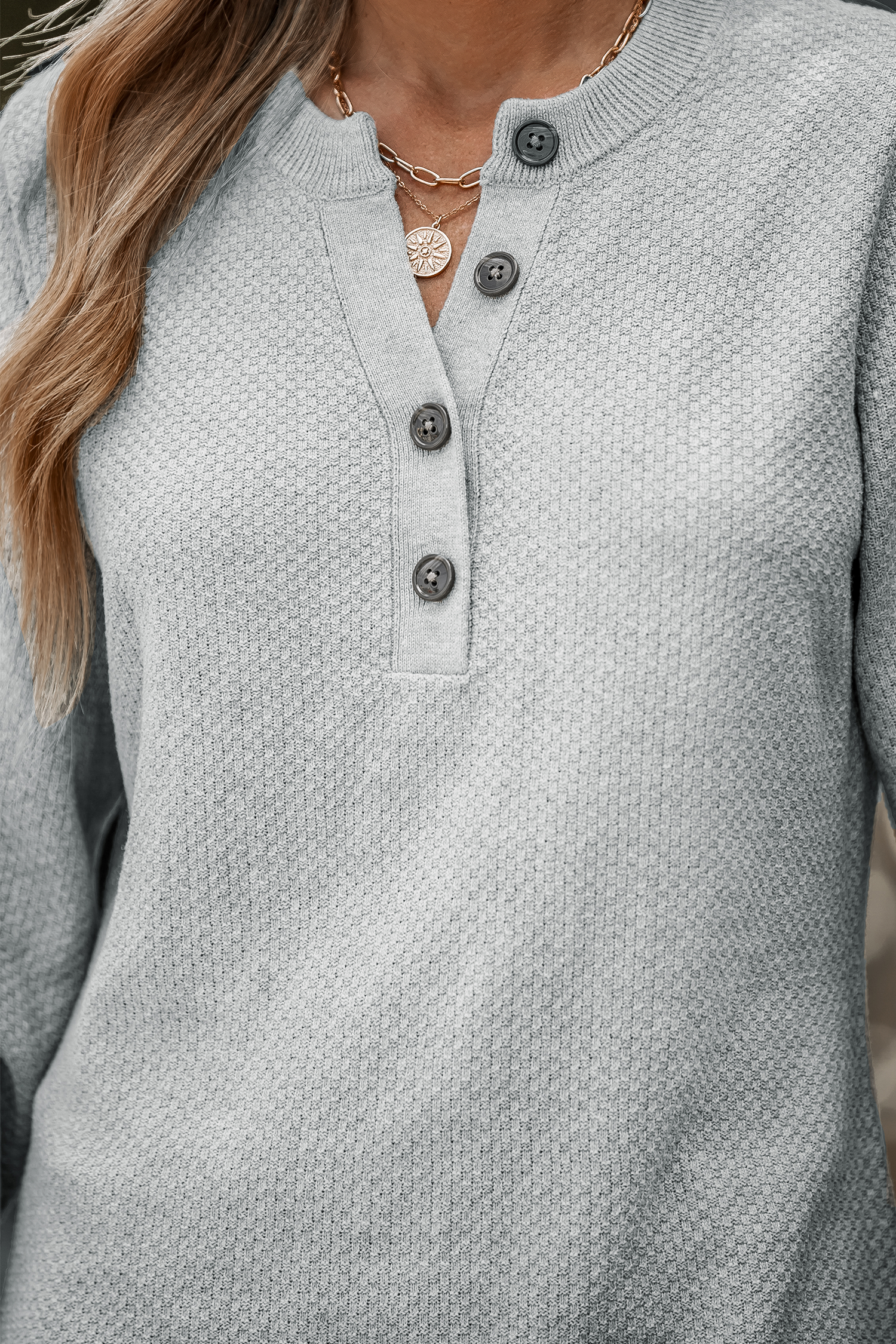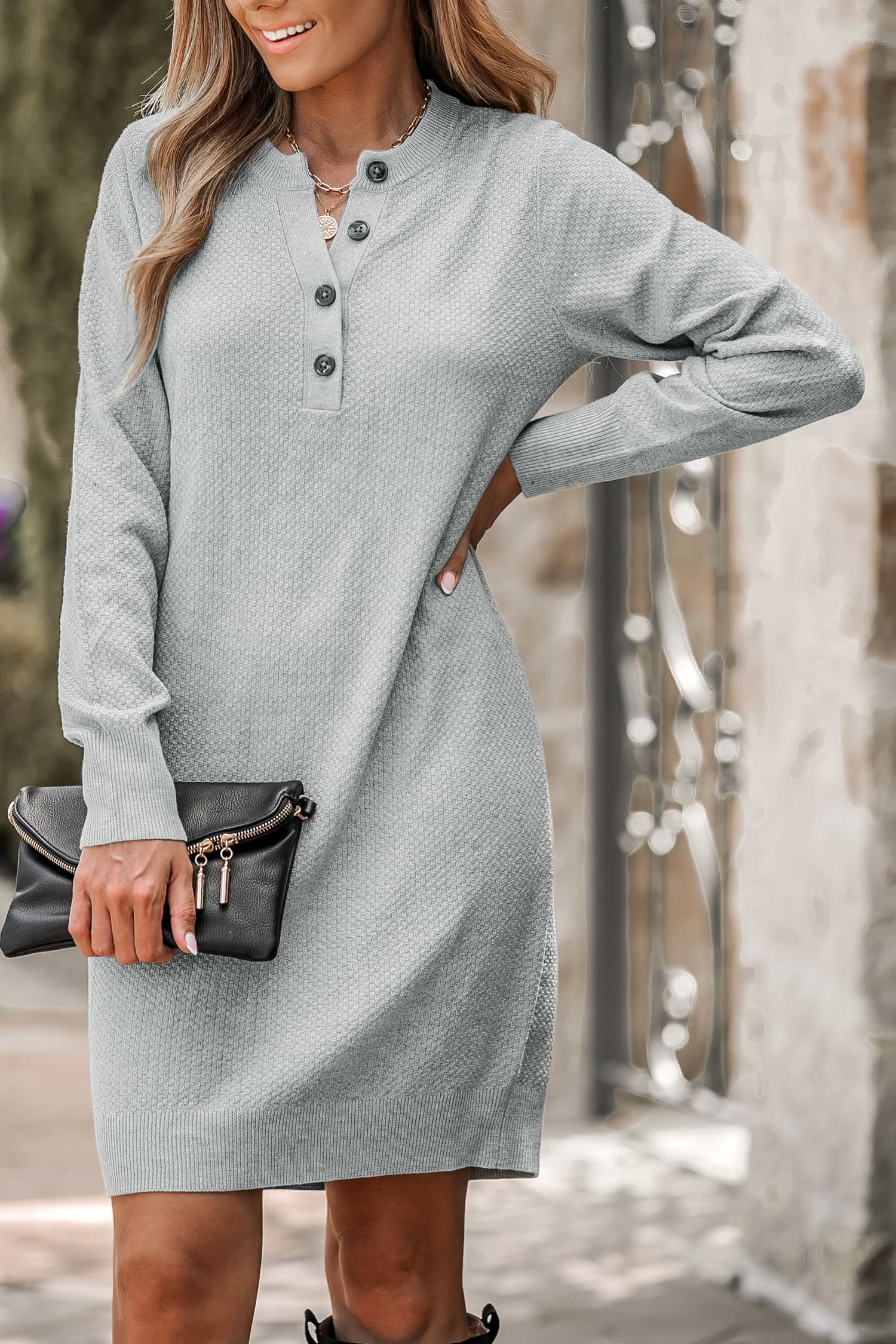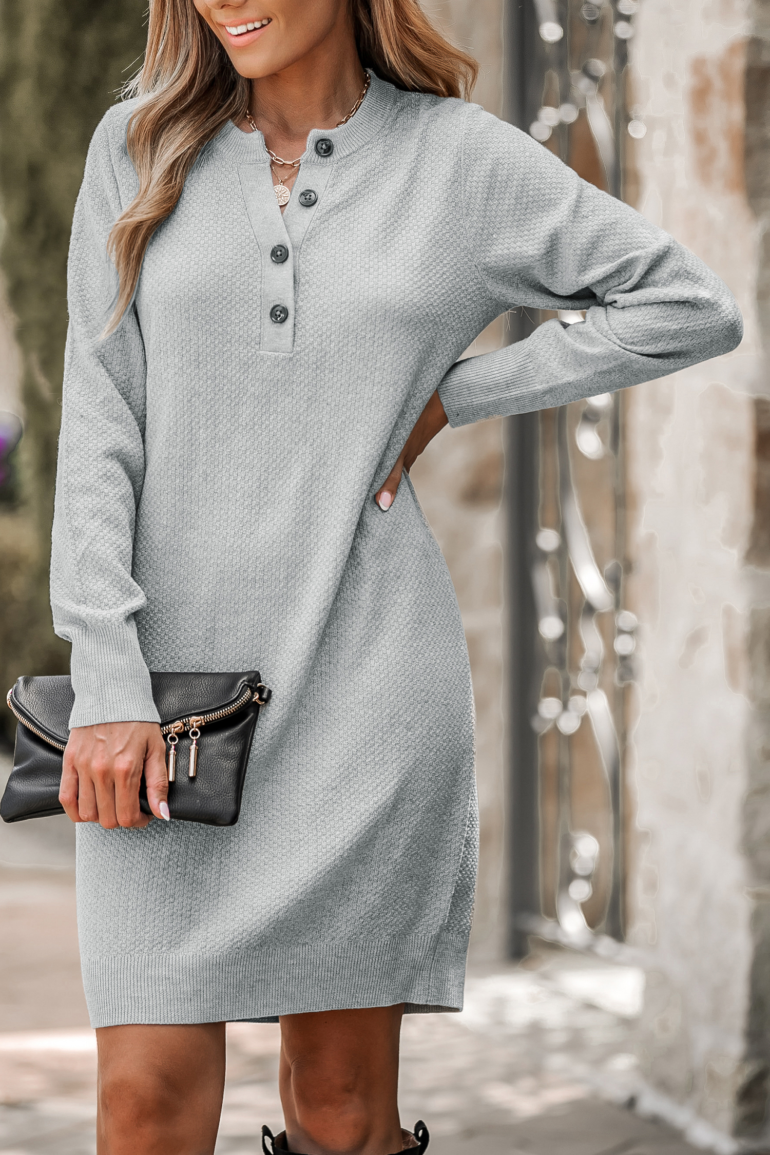 Charcoal Half-Button Midi Sweater Dress