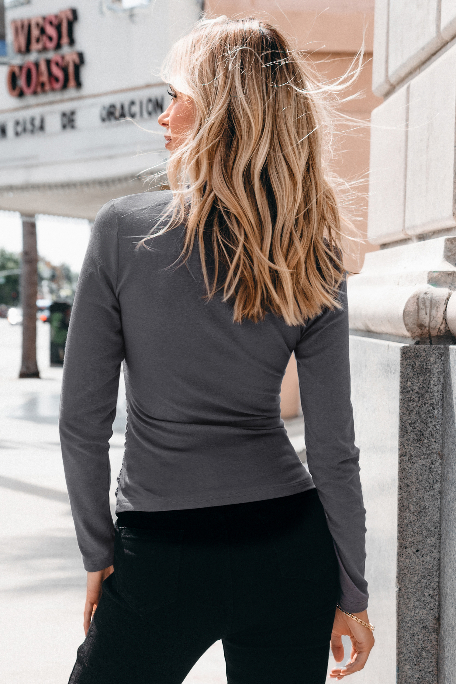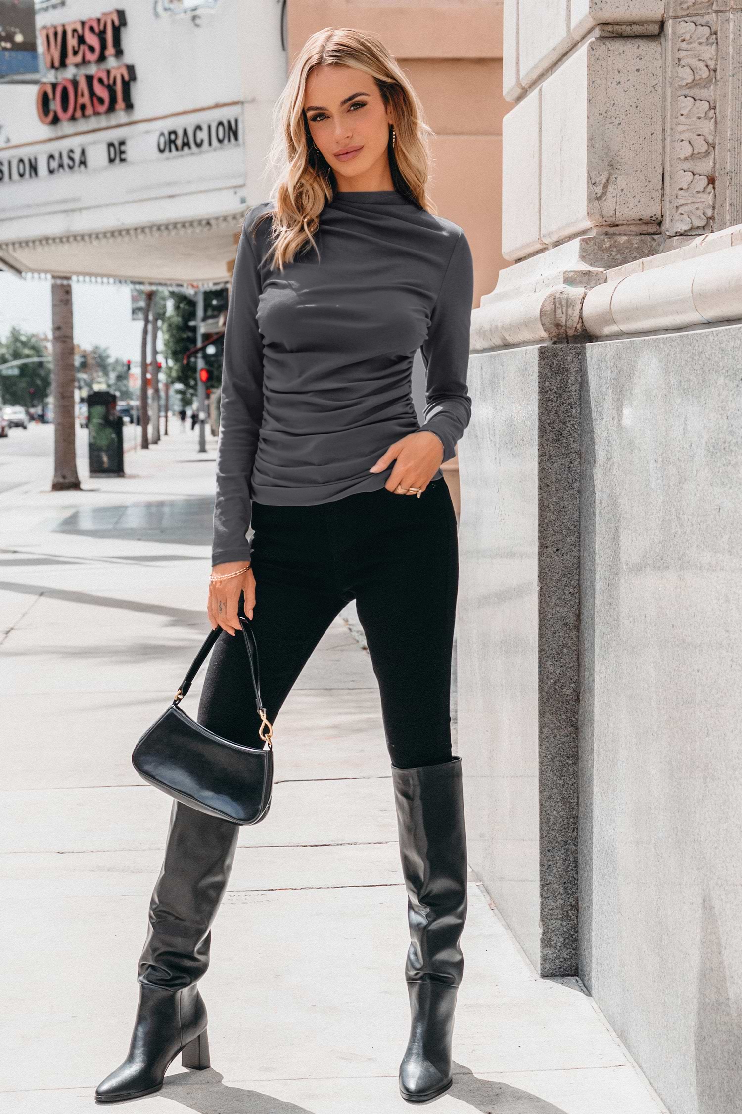 Charcoal High Neck Long Sleeve Top