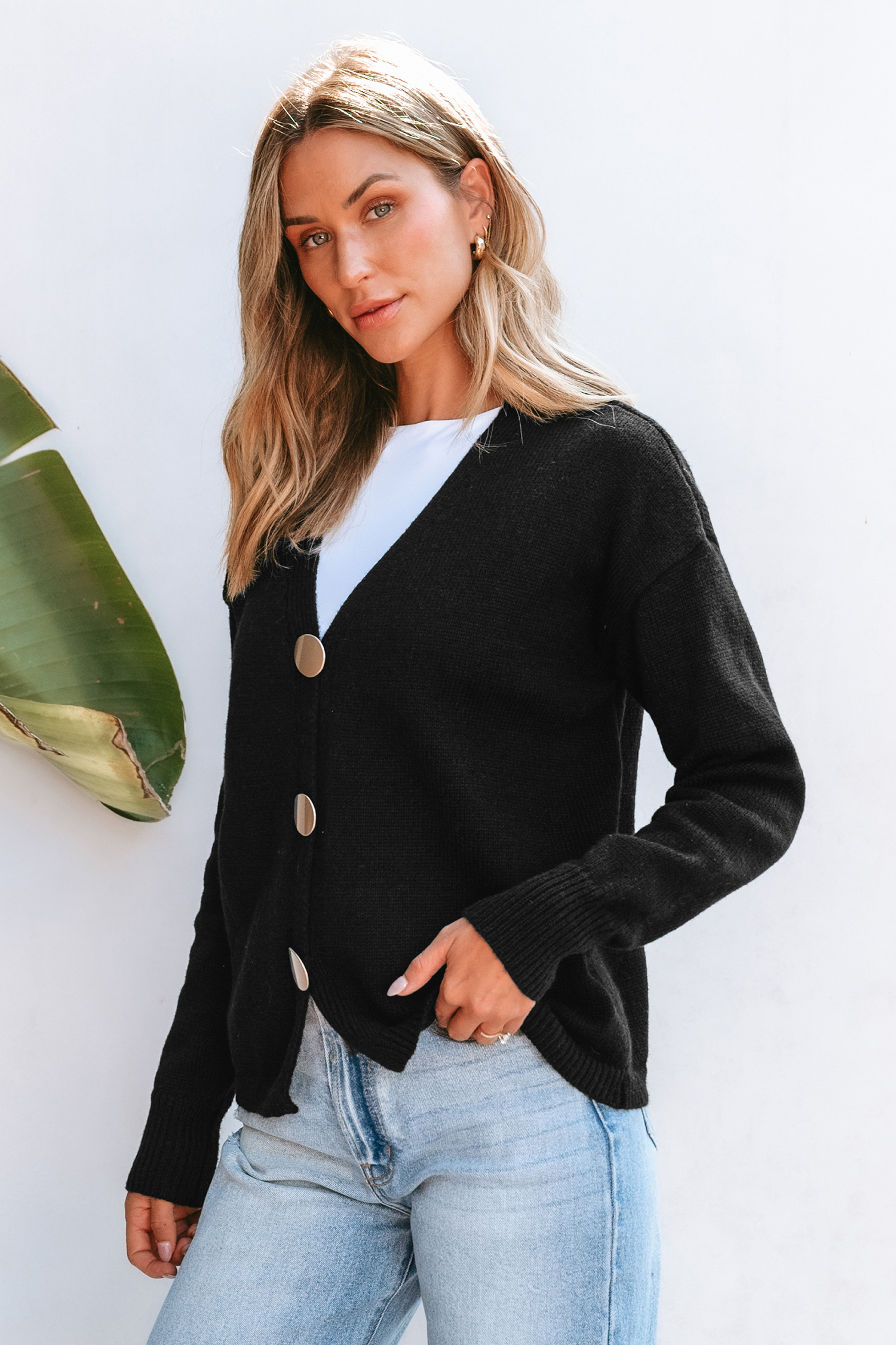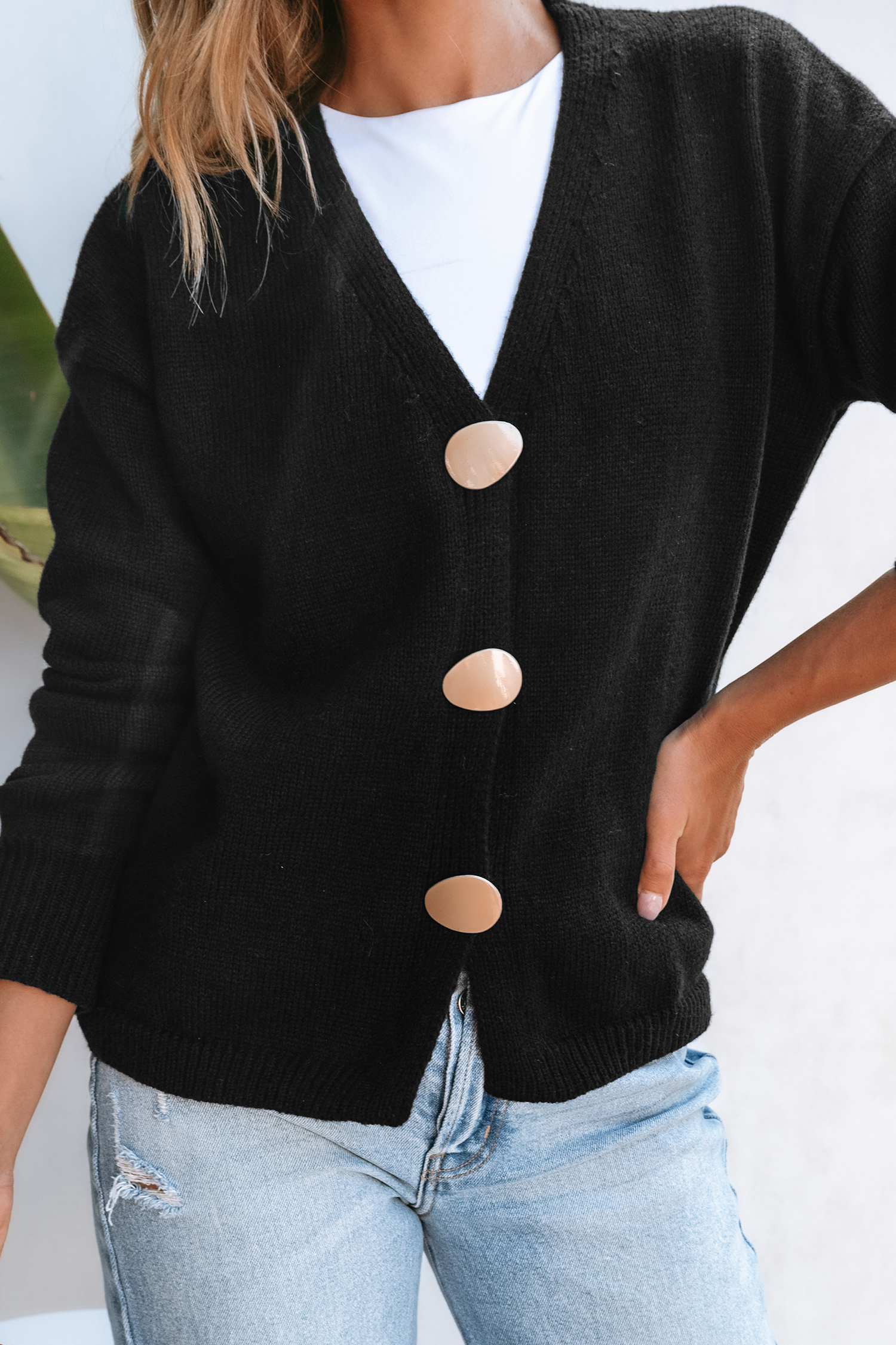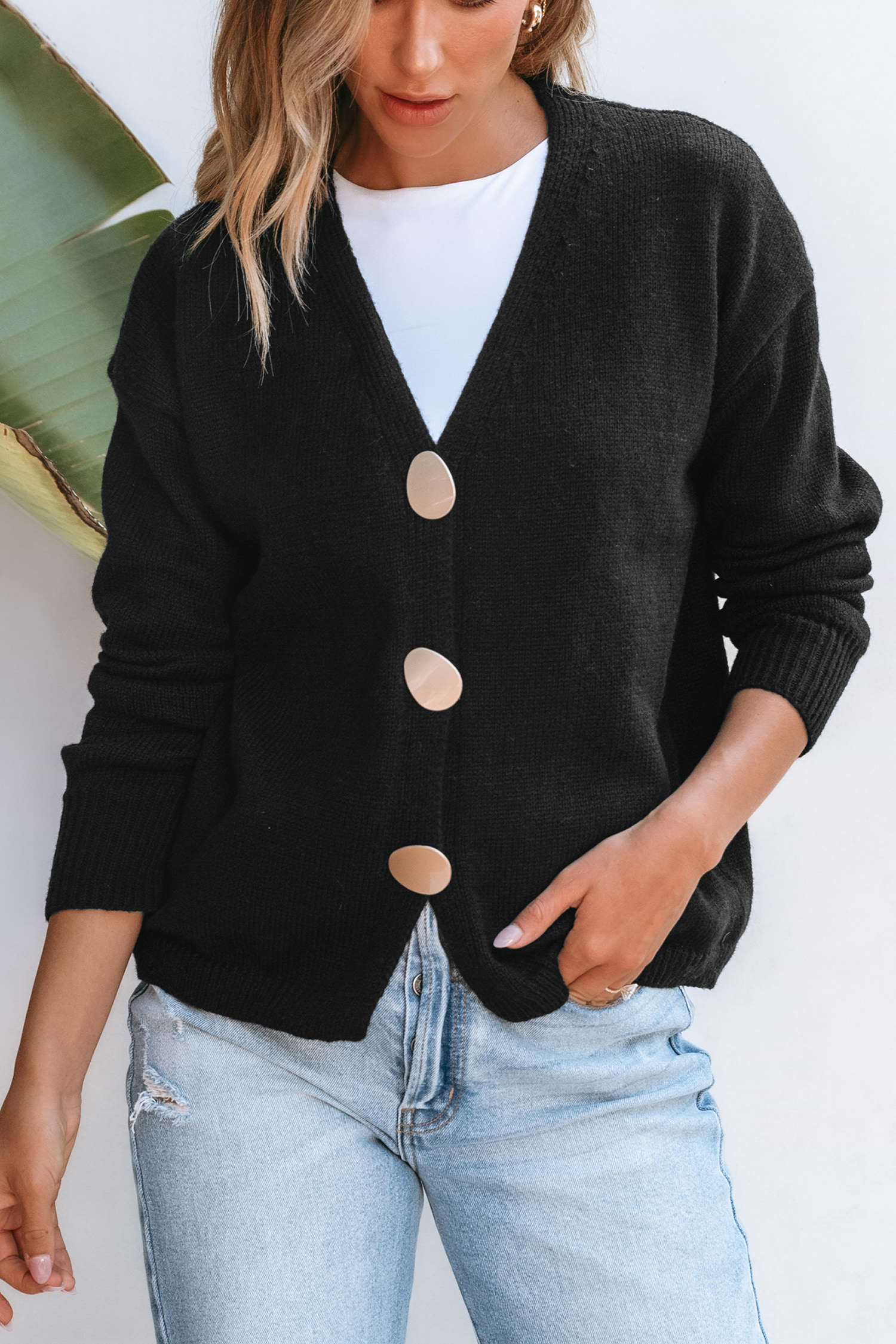 HomeCharcoal Knit Button-Up V-Neck Cardigan