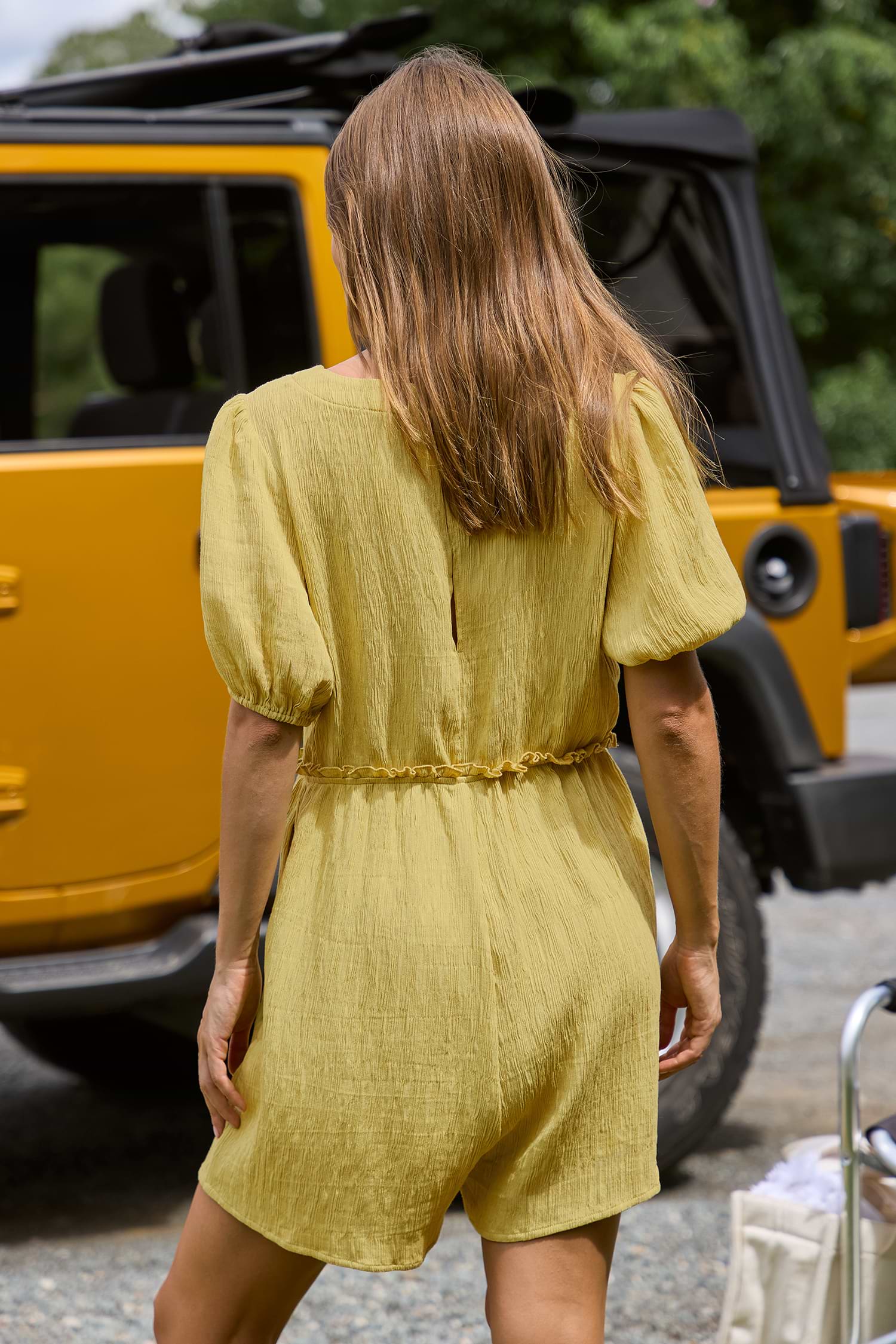 HomeChartreuse Puff Sleeve Wide Leg Romper
