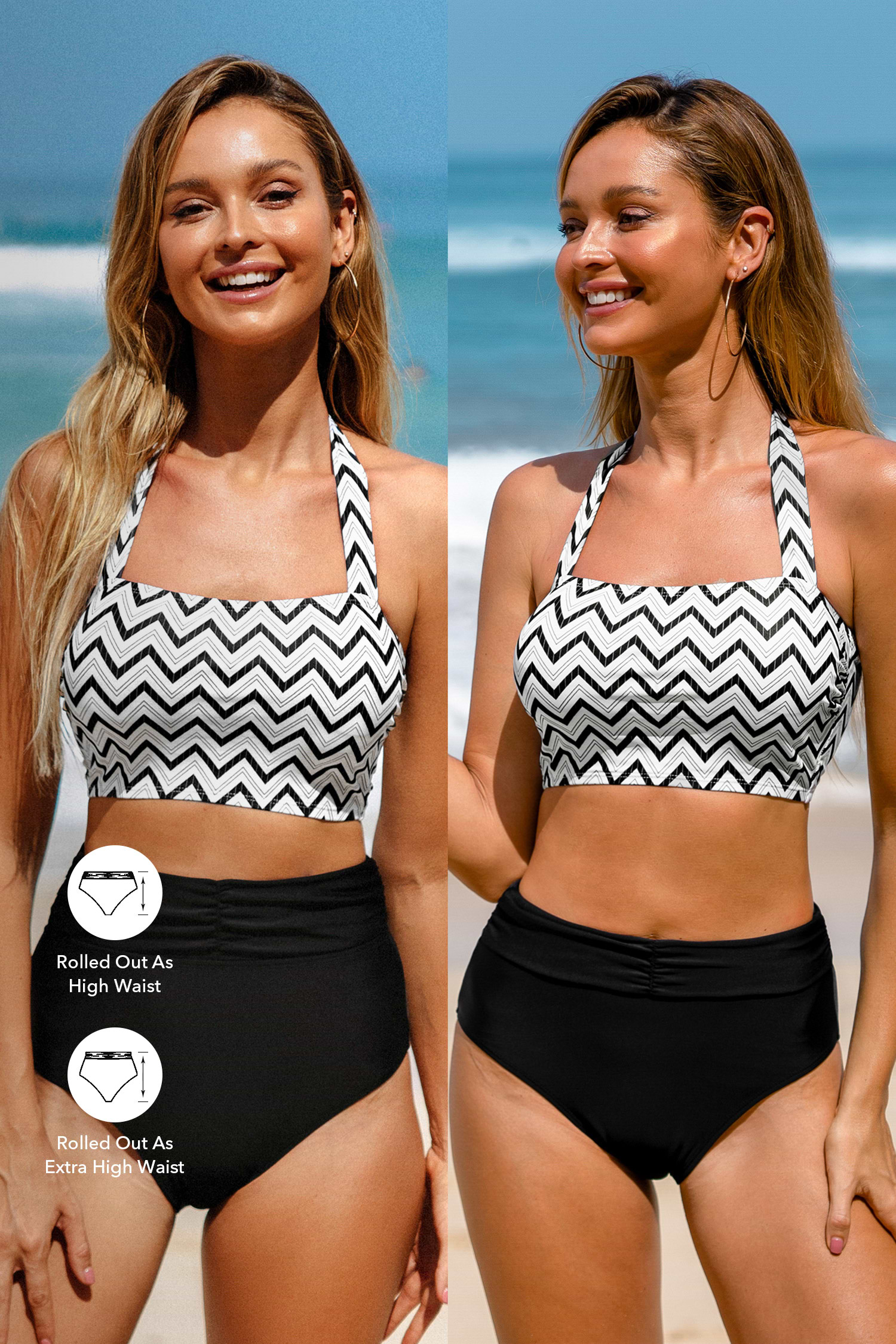 Chevron Halter Bandeau & Multi Way Tummy Control Midkini Set