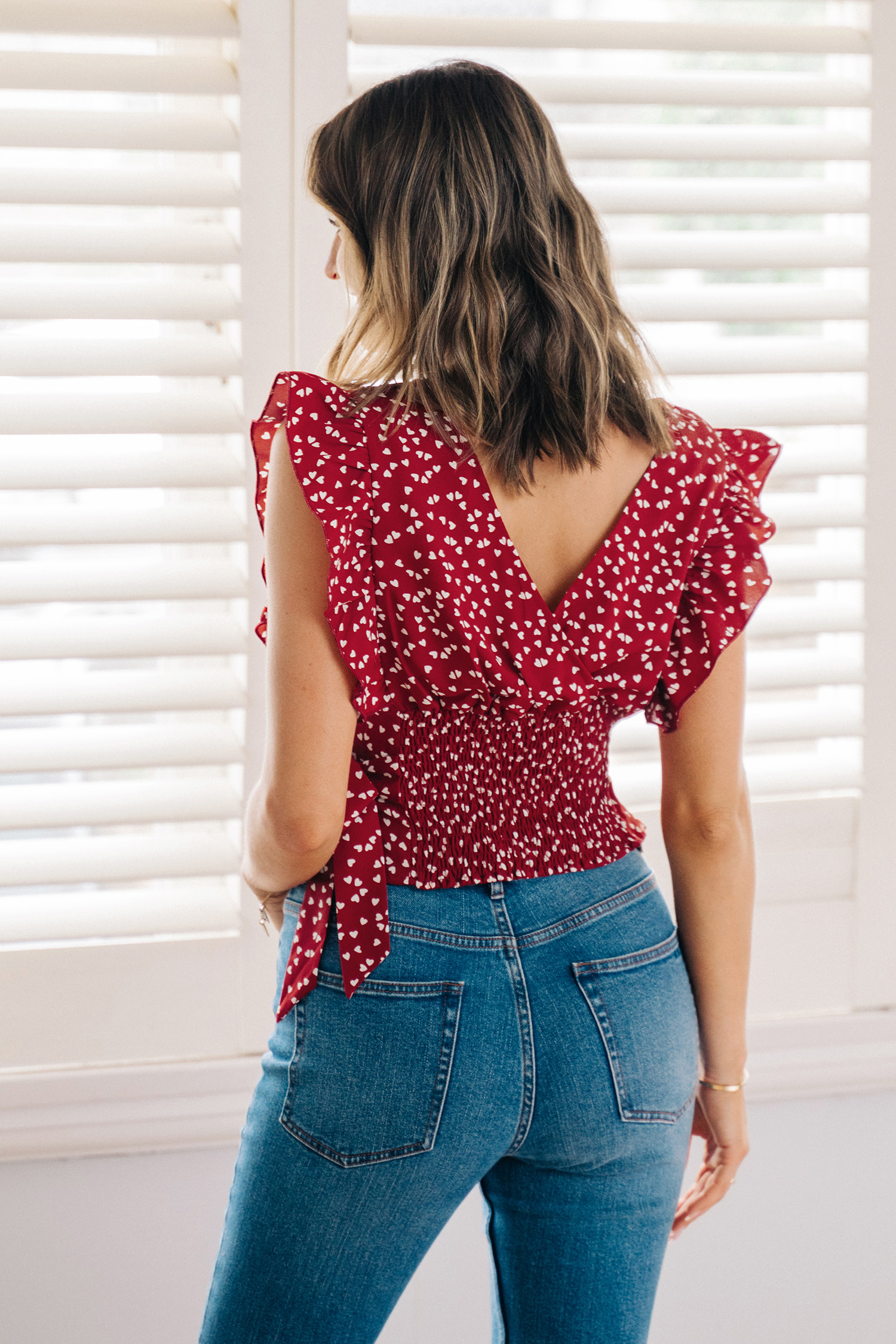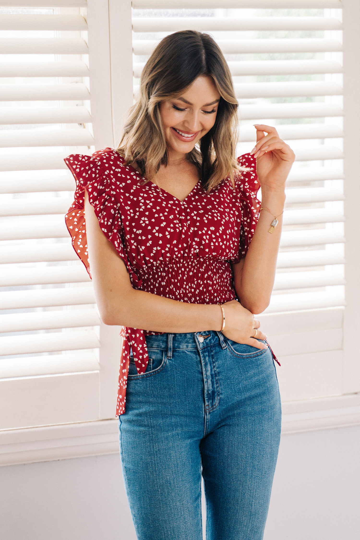 Chocolate & Milk Ruffle Lace Up Smocking Top