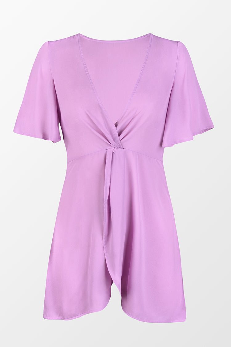 HomeChrista Plunge Bell Sleeve Zipper Short A-Shape Dress