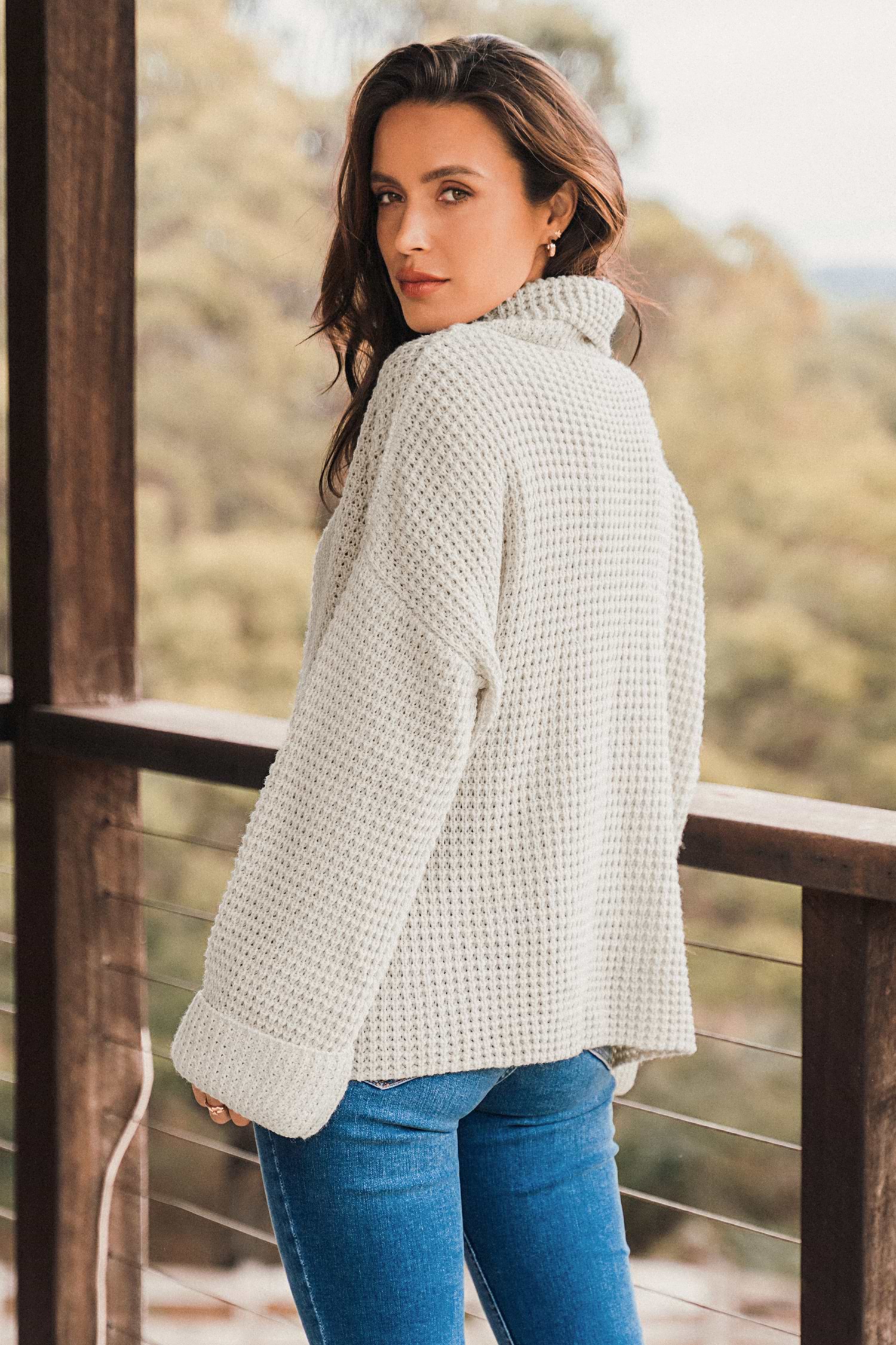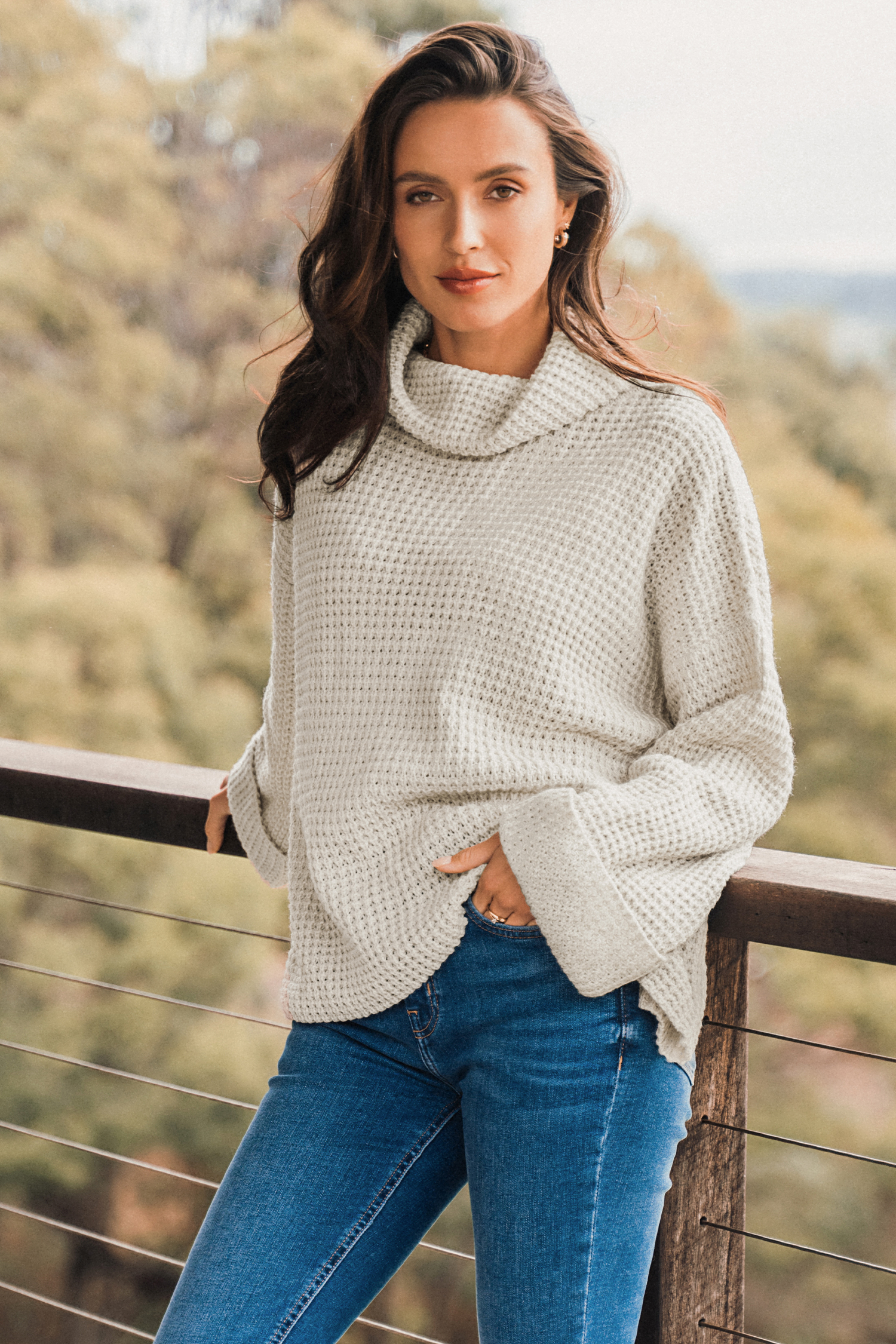 Chunky Knit Turtleneck Drop Shoulder Sweater