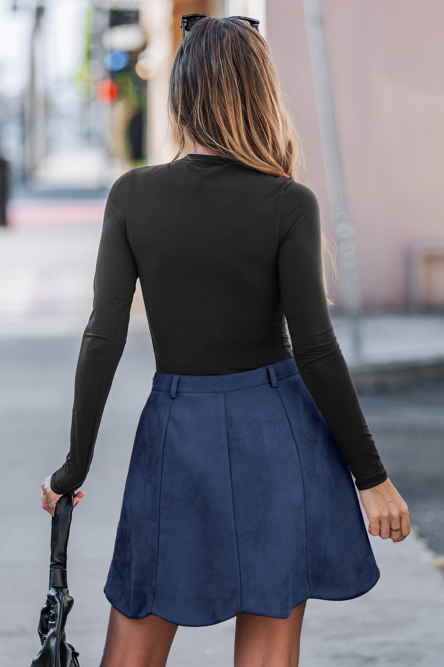 The Cider & Spice Blue Mini Skirt brings cozy autumn vibes with a playful twist! The button-front detail and mini length make it flirty and fun, perfect for layering with tights for added warmth.