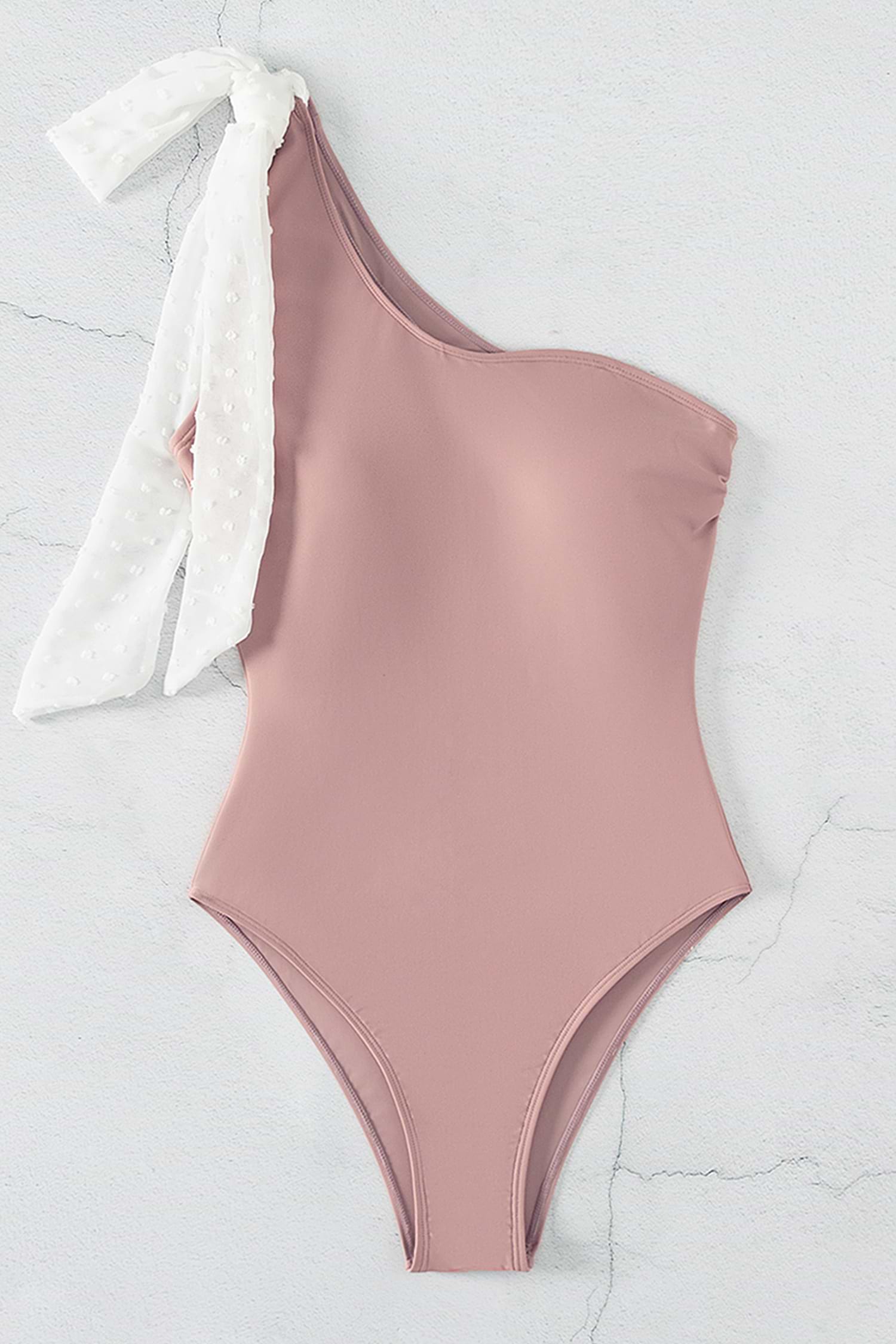 Clip Dot Bow One-Shoulder One Piece Swimsuit