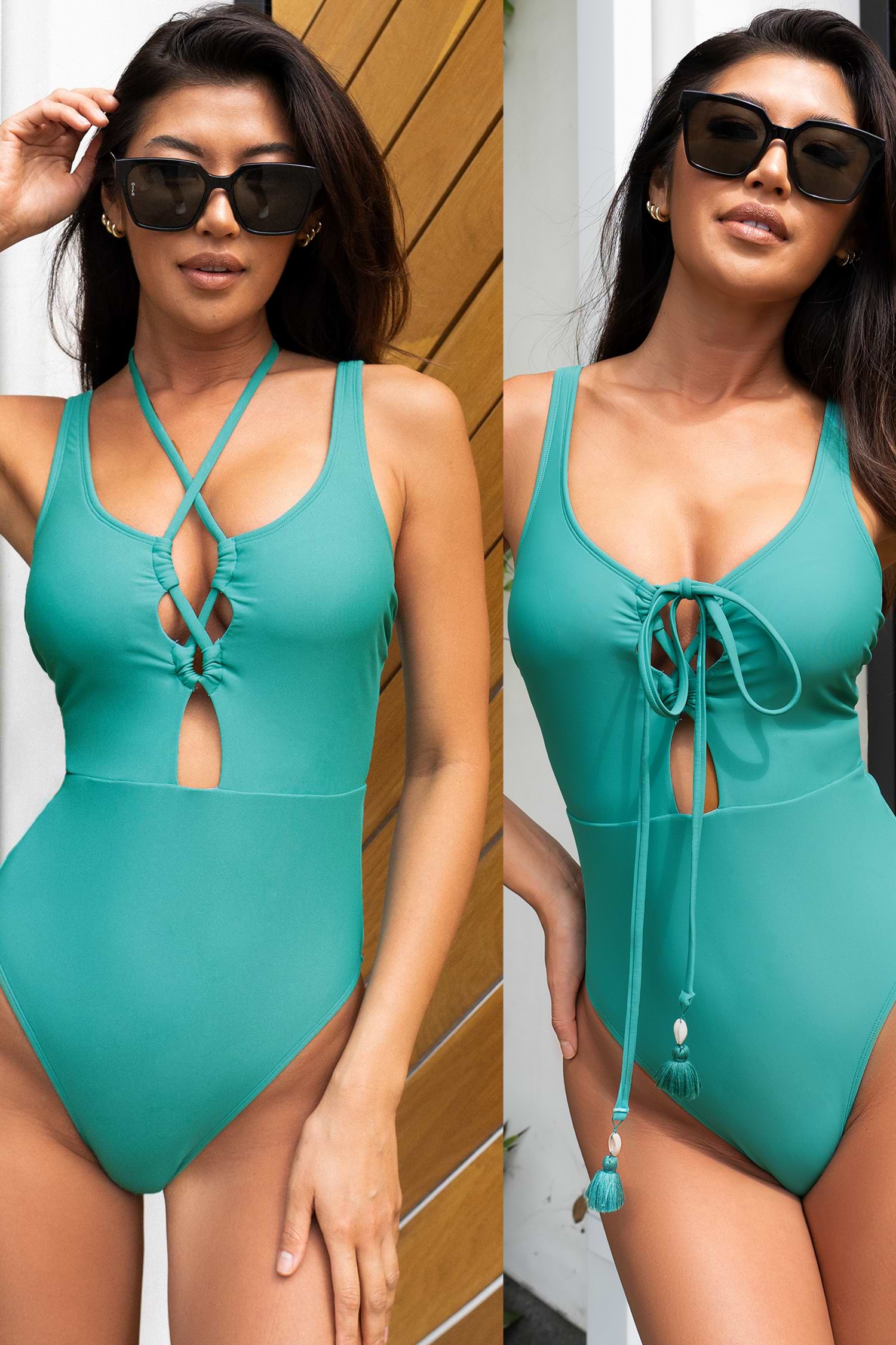 Colombia Coast Knotted Versatile Strap One Piece Swimsuit