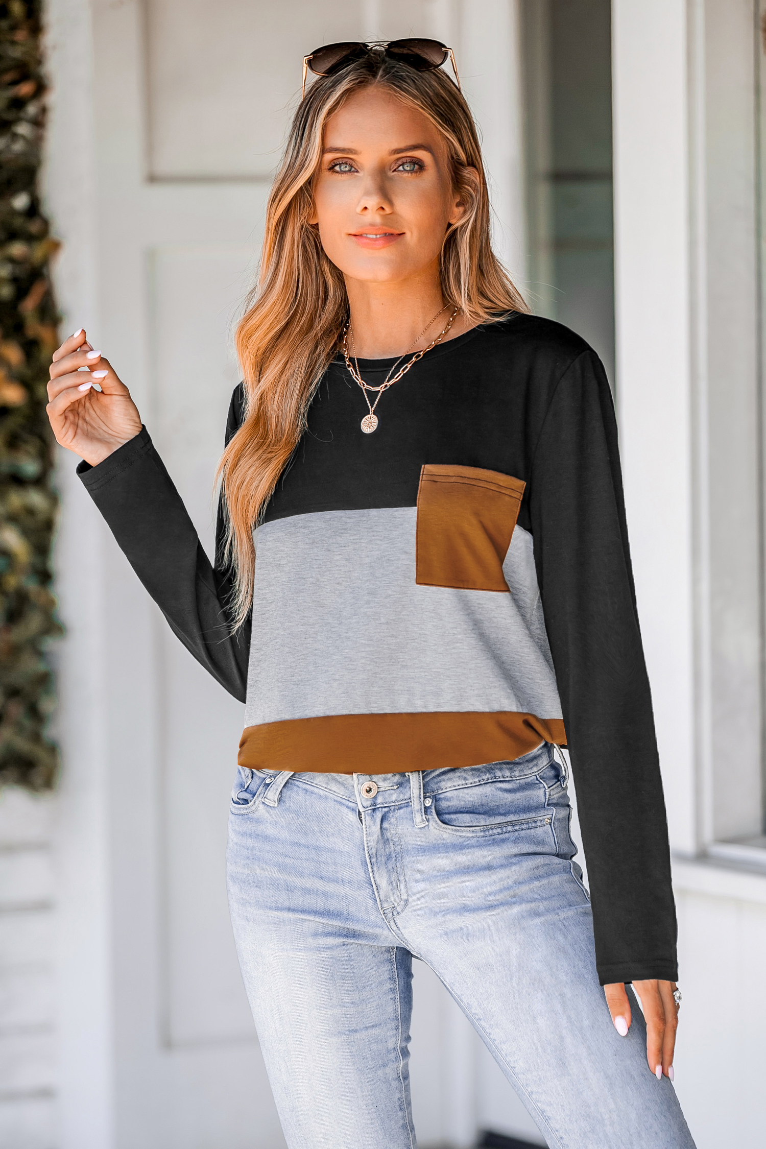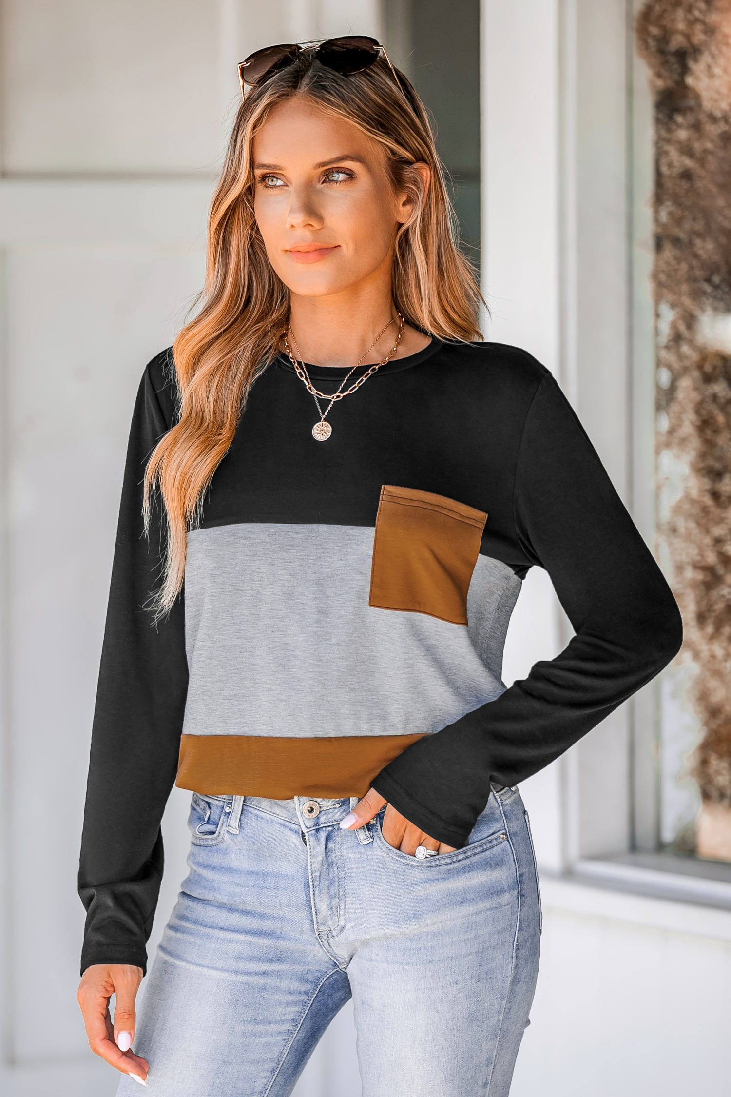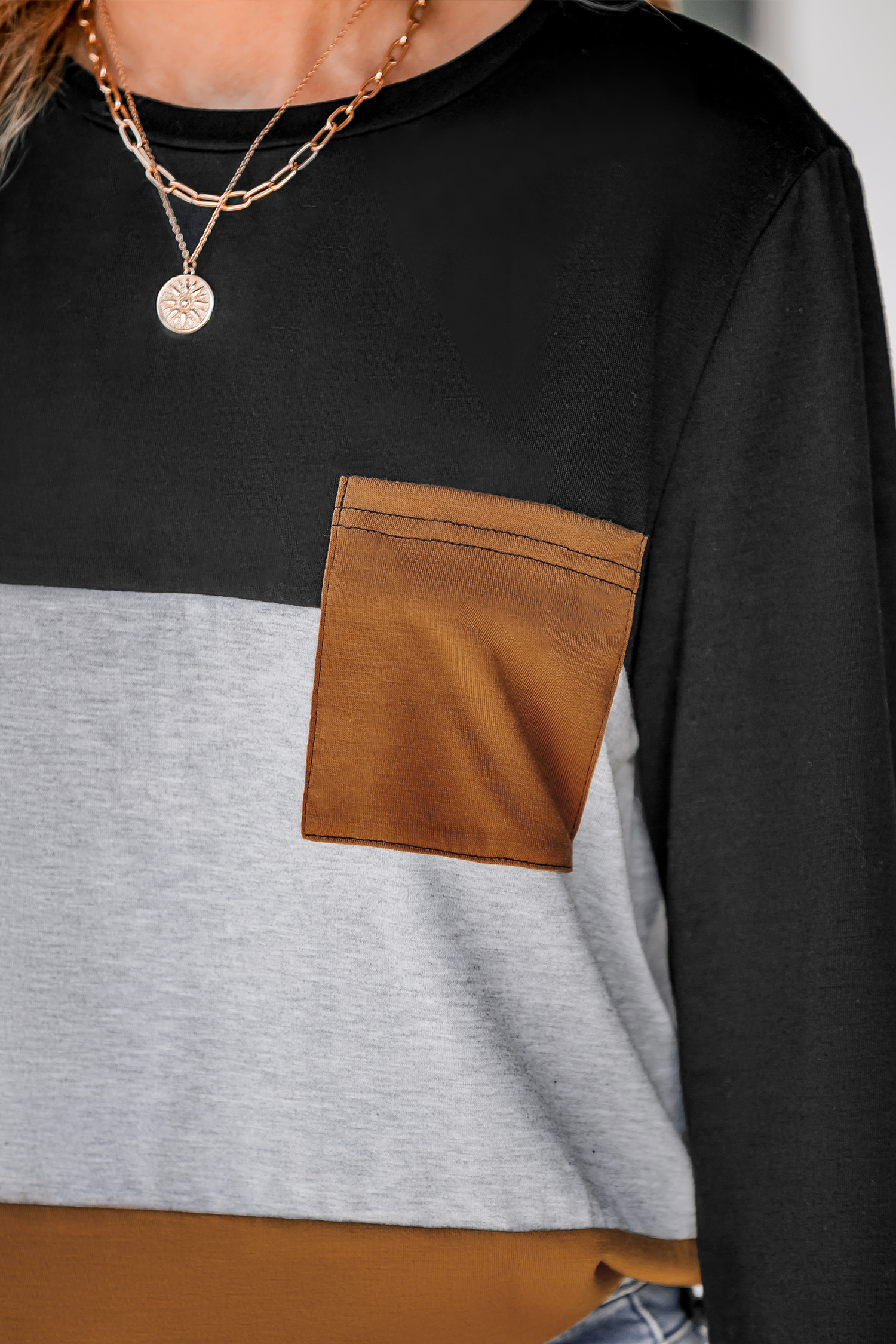 Colorblock Pocket Long Sleeve Tee