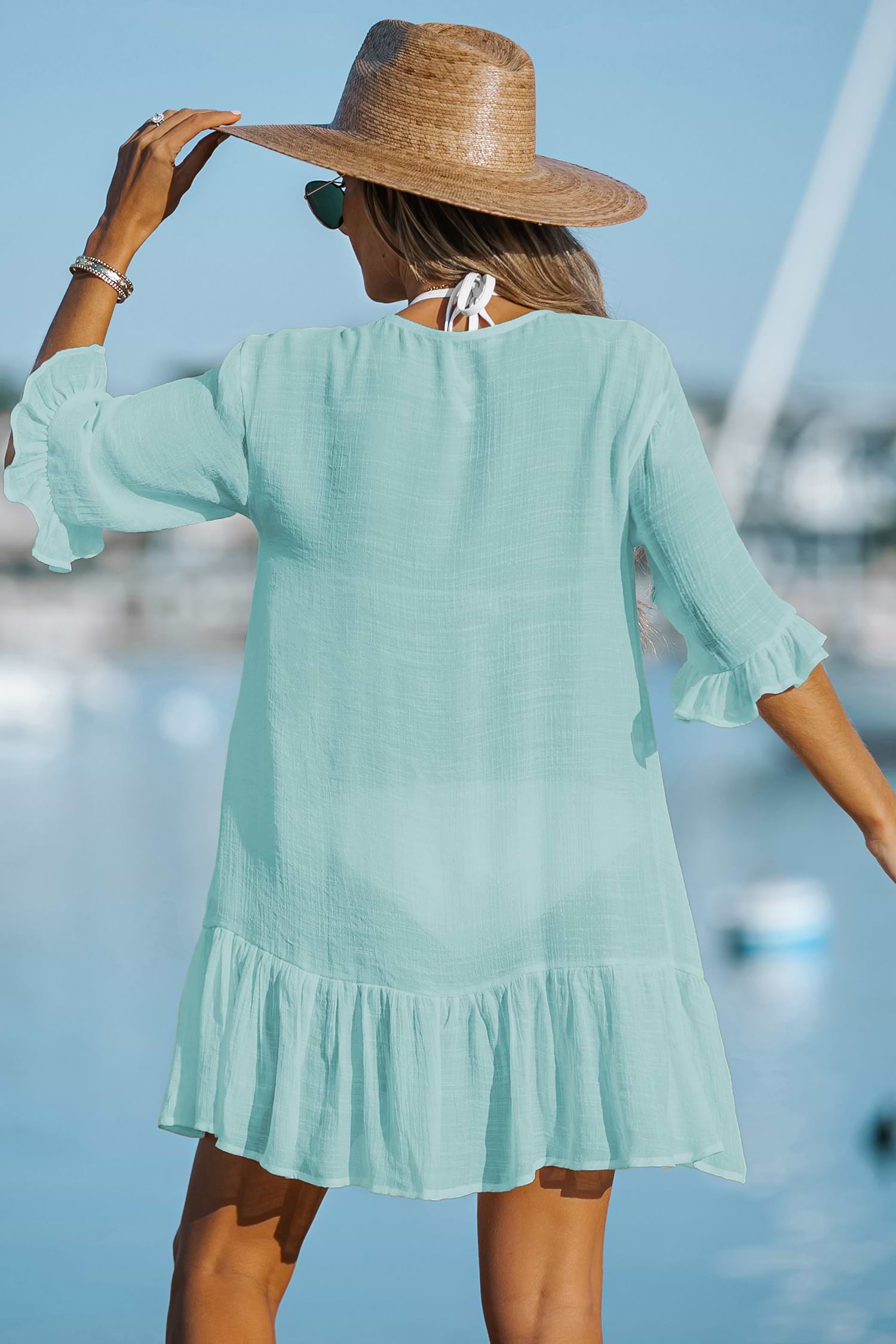 Coral Seas Aqua Cover-Up Mini Dress