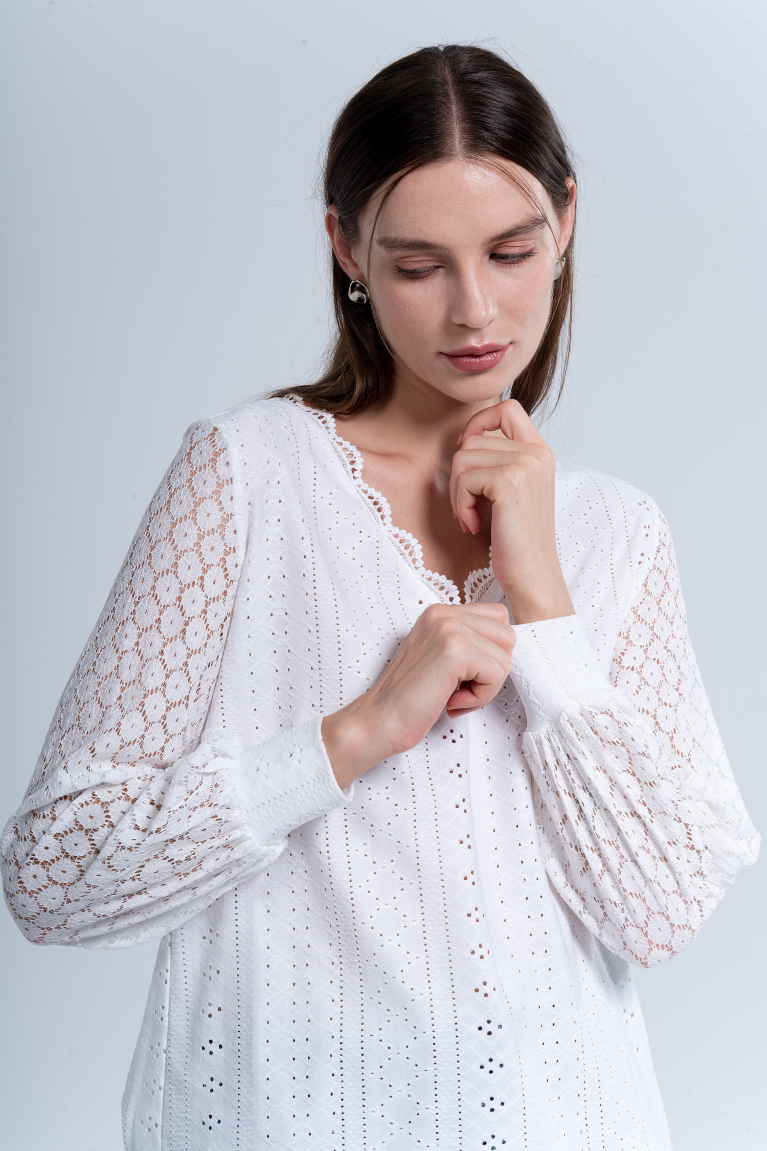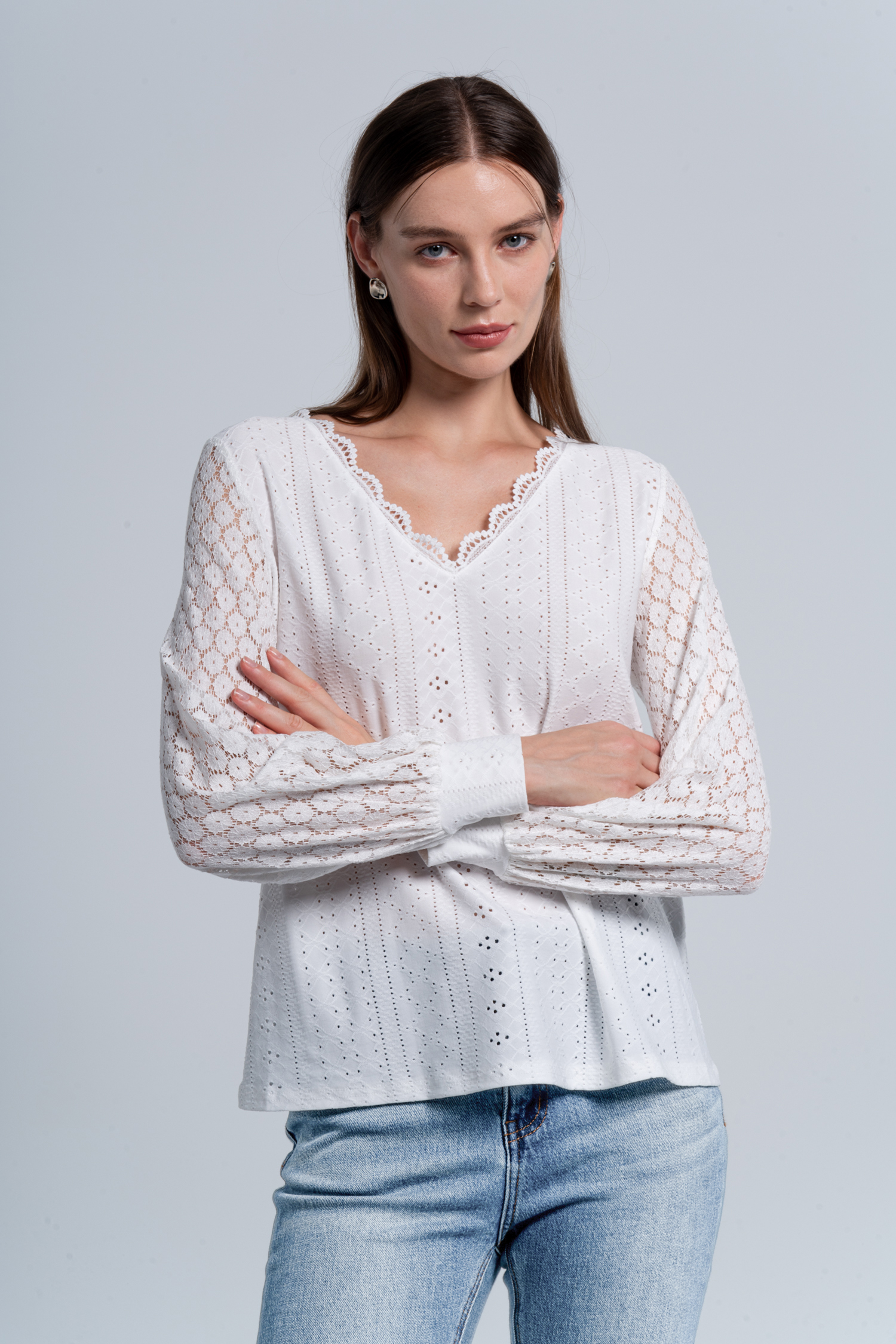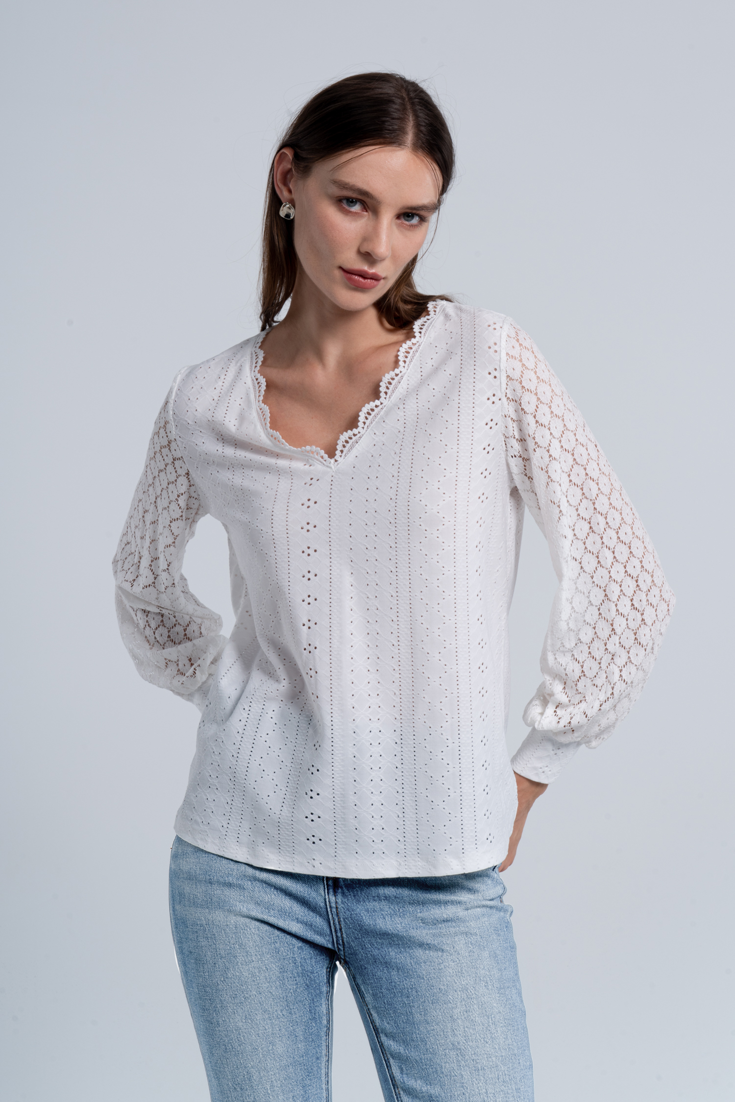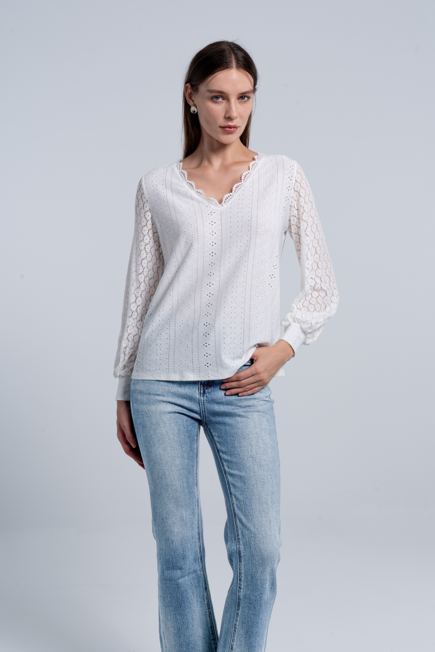 Cutout Scalloped Lace V-Neck Top