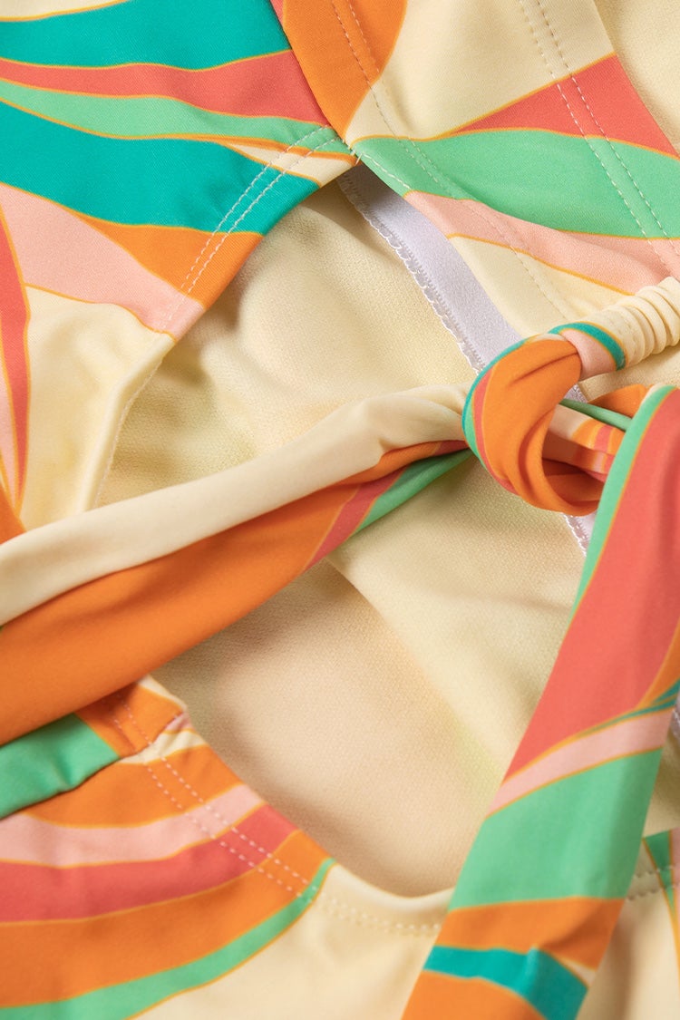 Dancing Ribbon Square Neck Tummy Control Plus Size One Piece