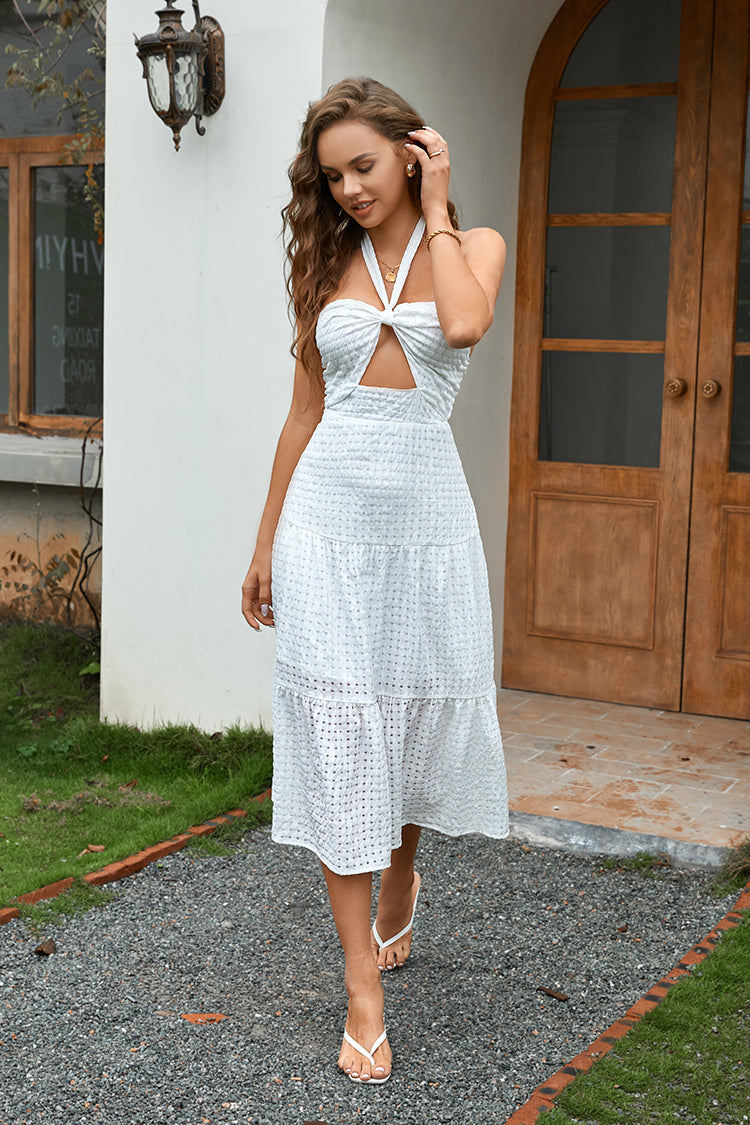 HomeDrea Halter Neck Fitted Waisted A-Shape Dress