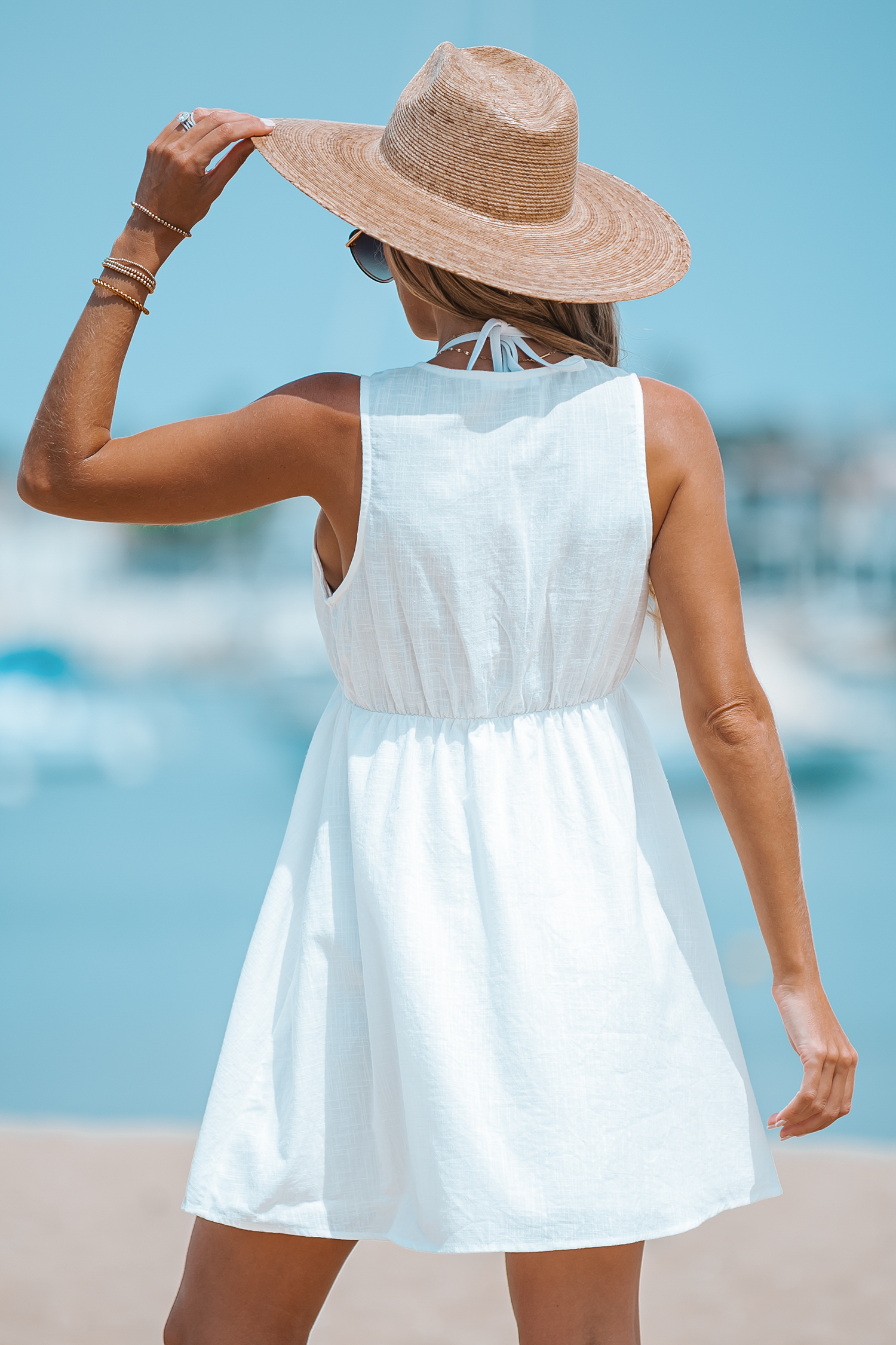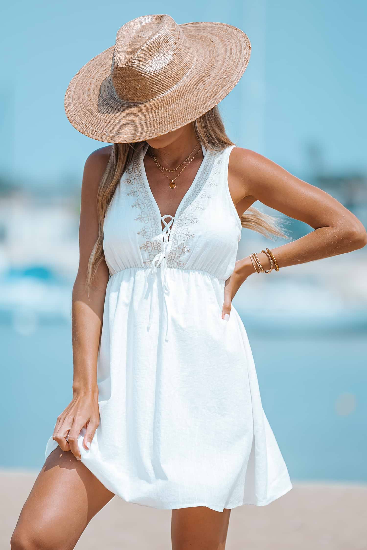 Embroidered Lace-Up Mini Dress