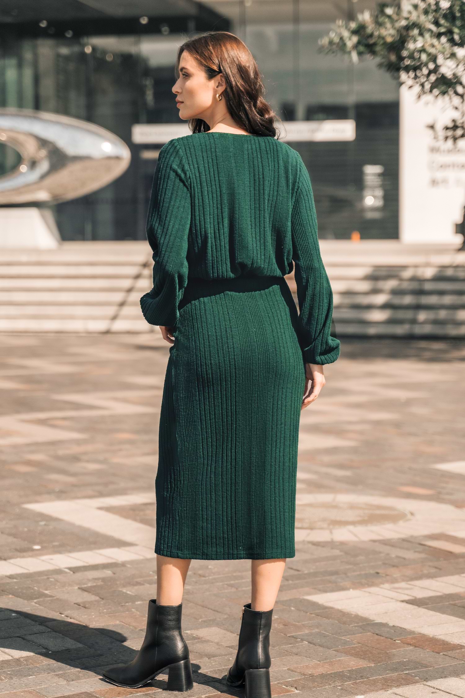Emerald Ribbed Midi Dress