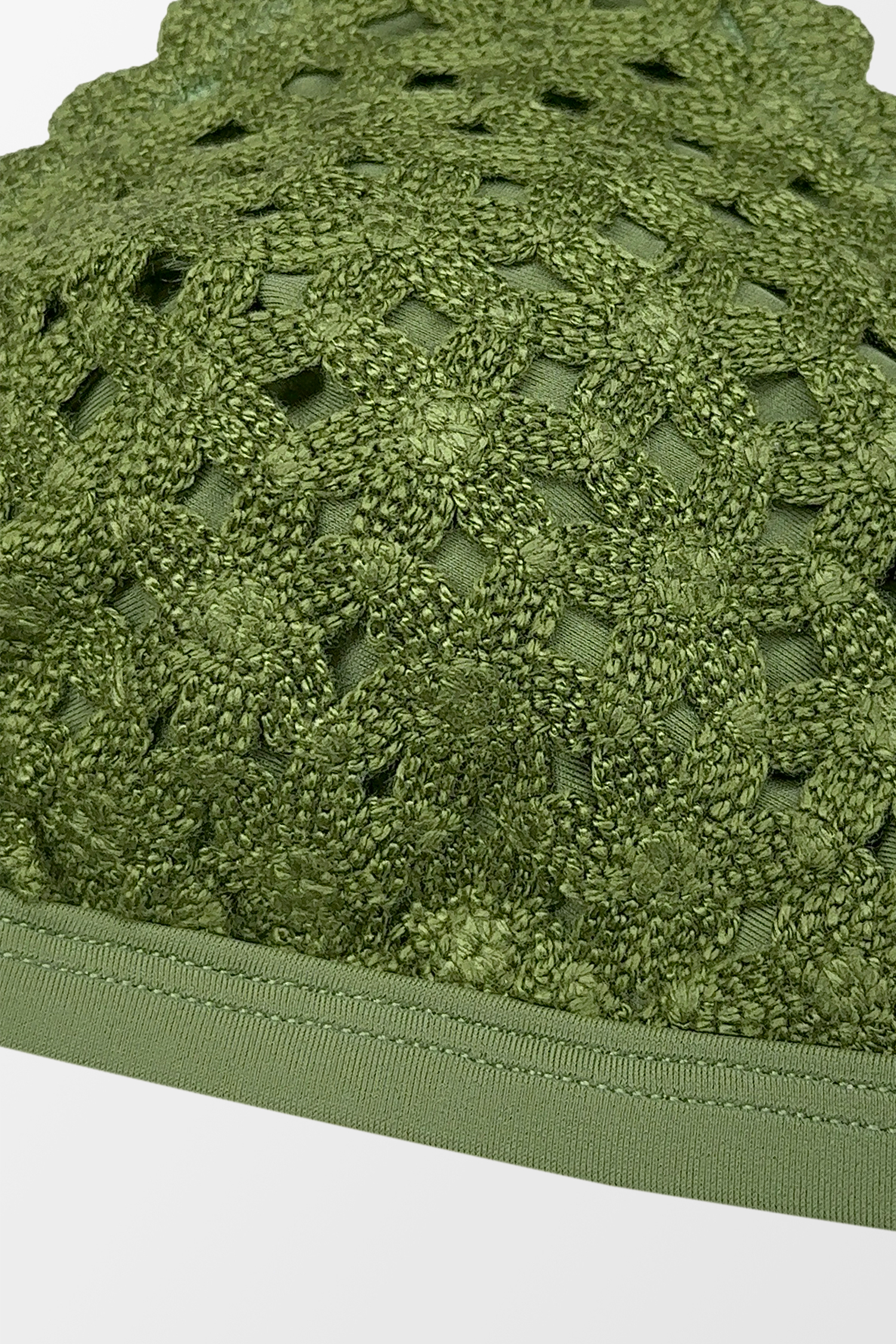 Textured Triangle Top & Green Extra Cheeky String Bikini Swimsuit