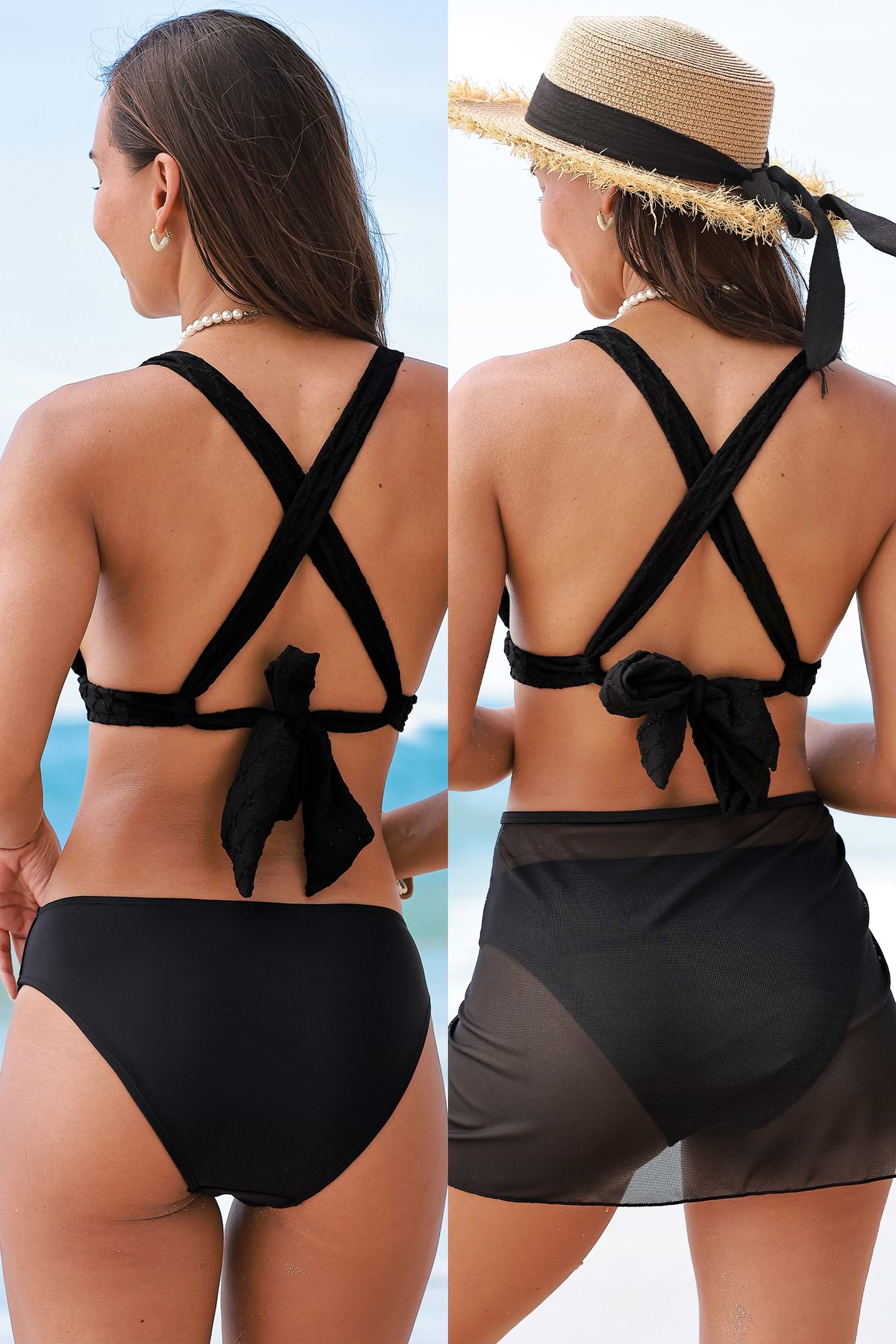 HomeGlam Details Black Bikini Bottoms & Sarong Set