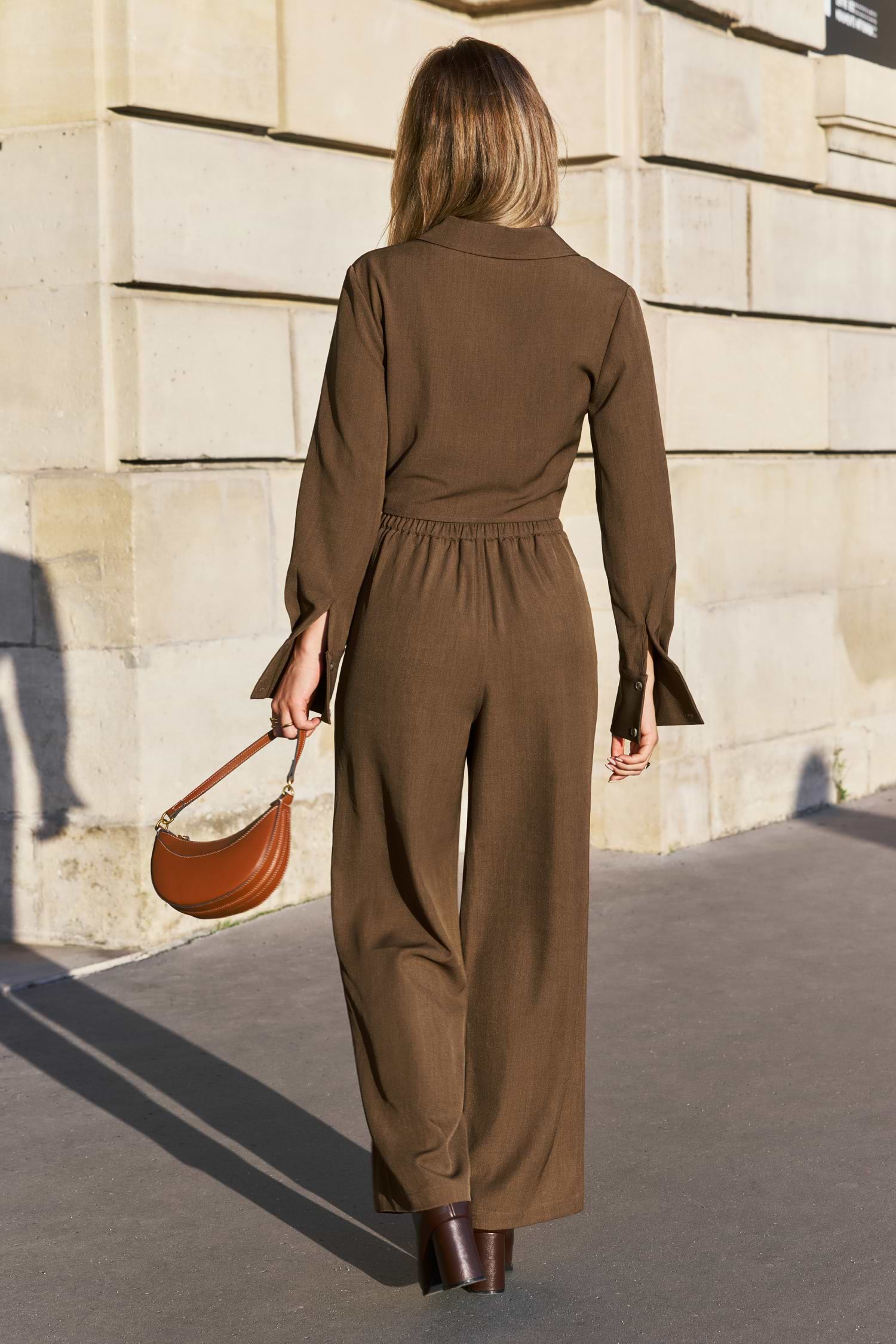 Espresso Brown Cropped Top & Straight Leg Pants Set