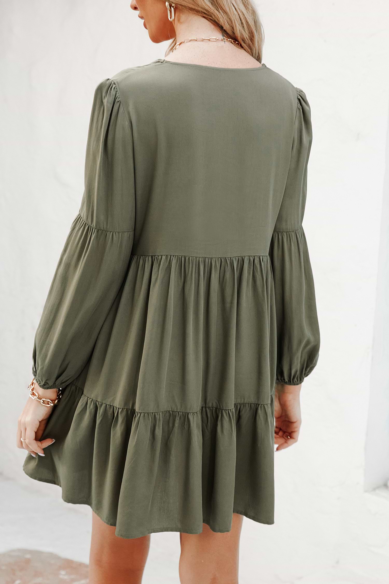HomeFancy Gift Long Sleeve Ruffle V-neck Dress