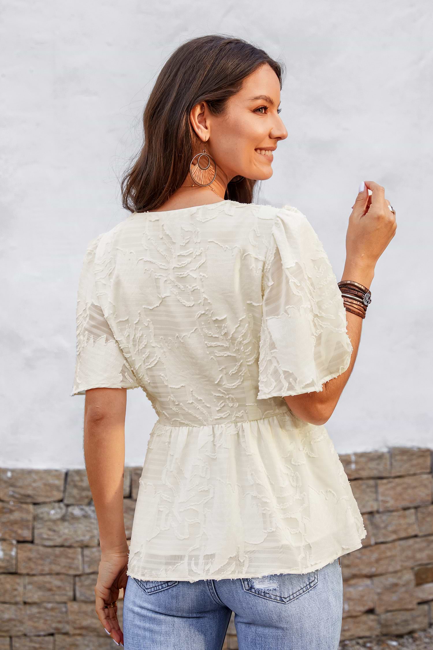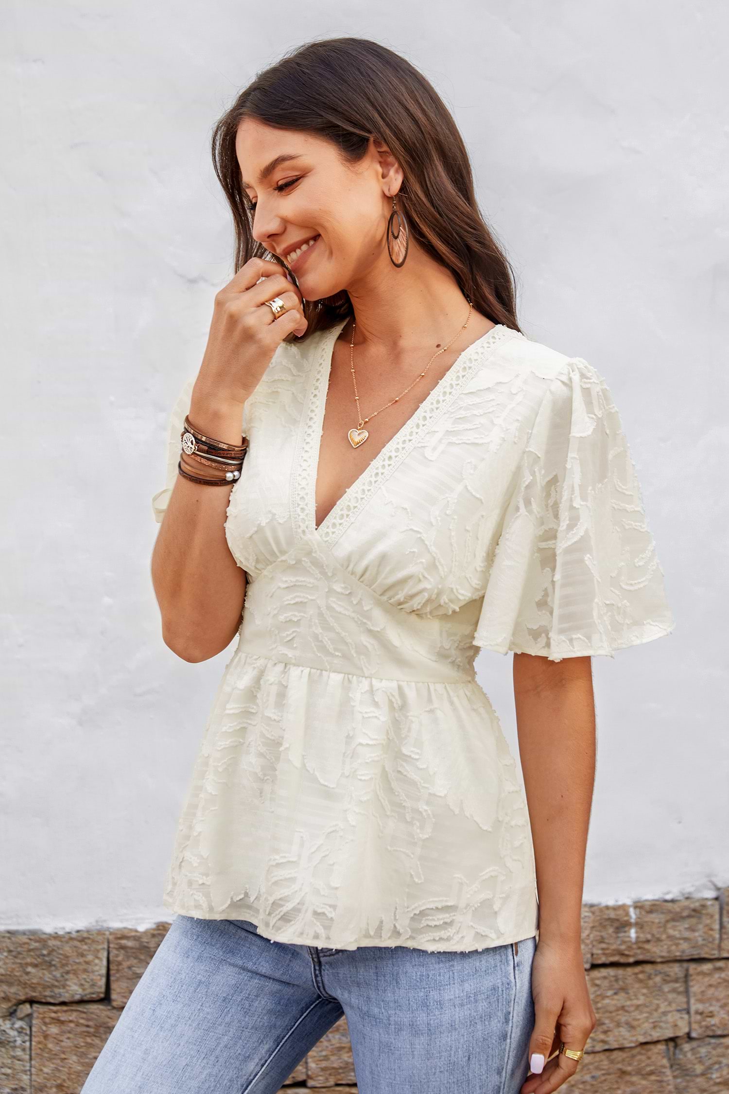 HomeFirst Kiss Flared Sleeve Contrast Lace Top