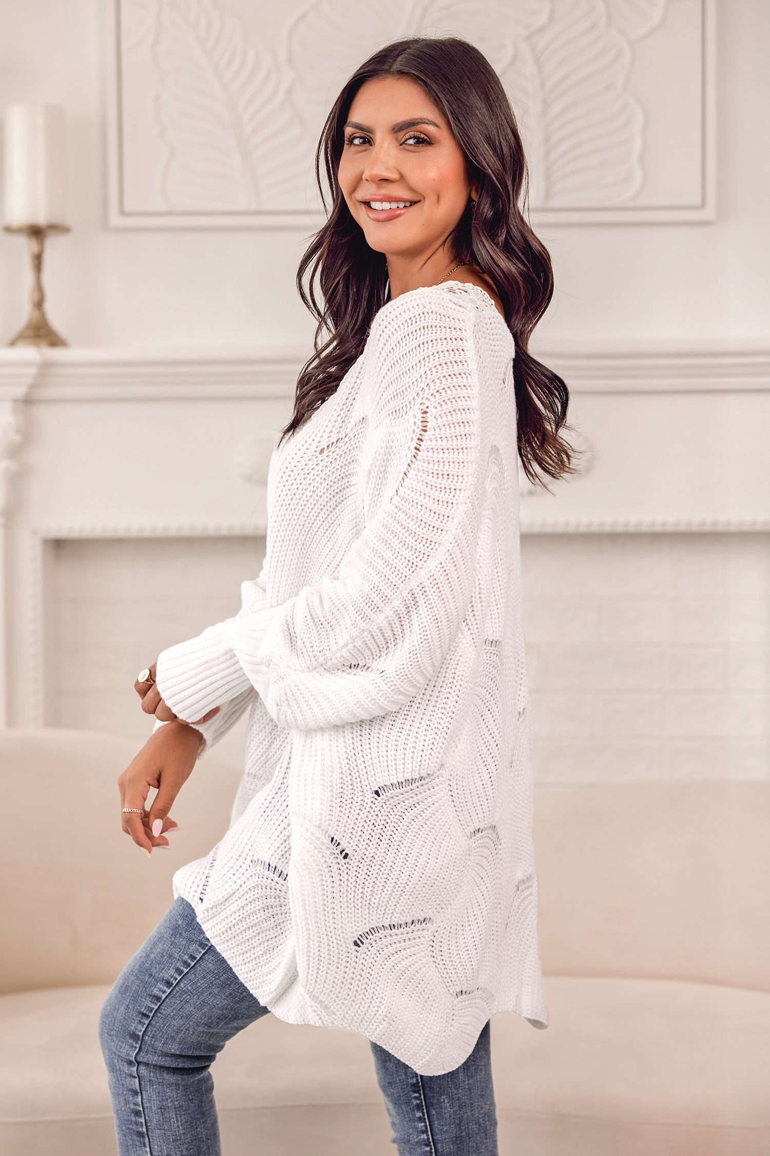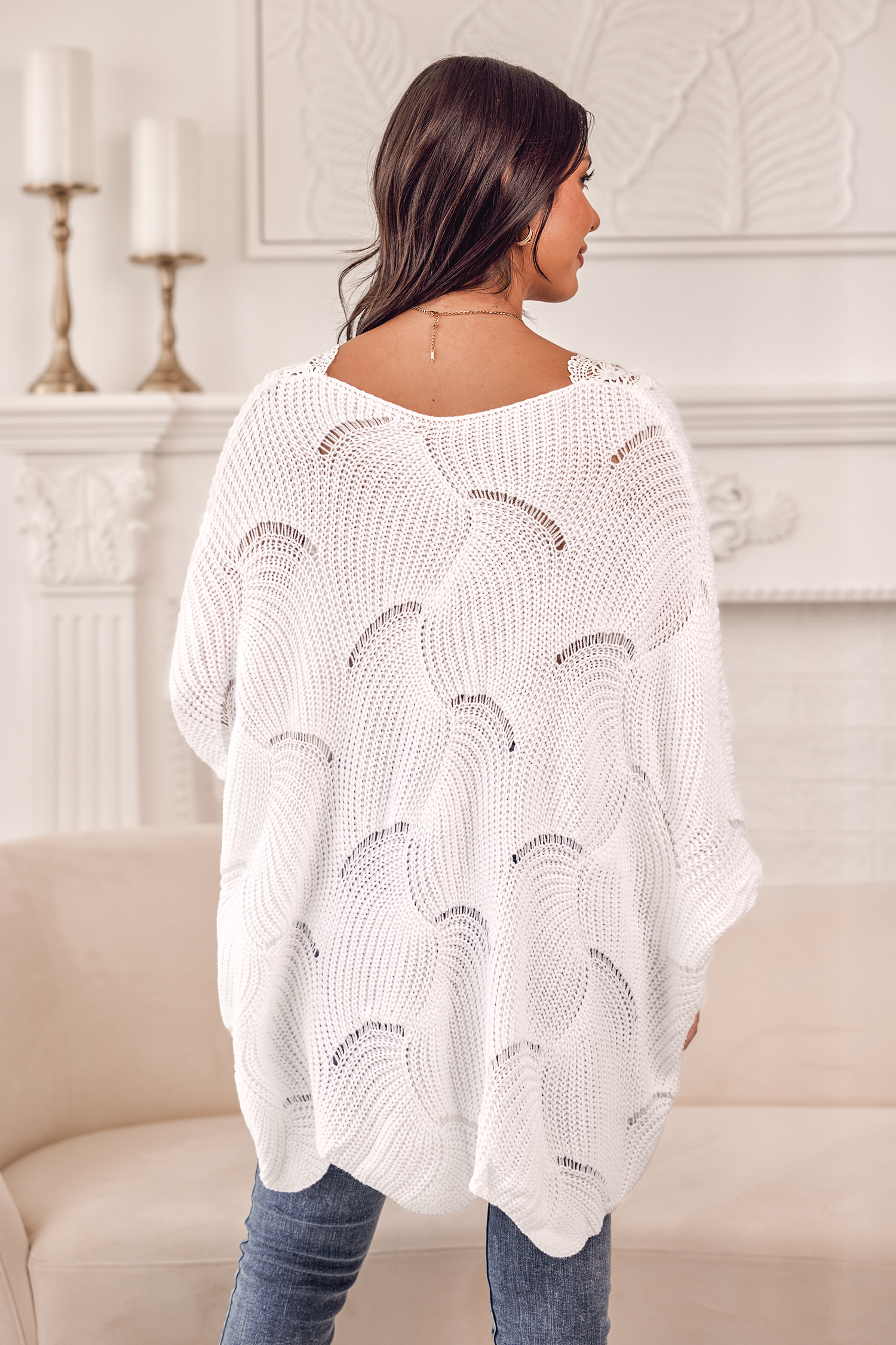 HomeFloral Lace Pointelle Knit Scalloped Sweater