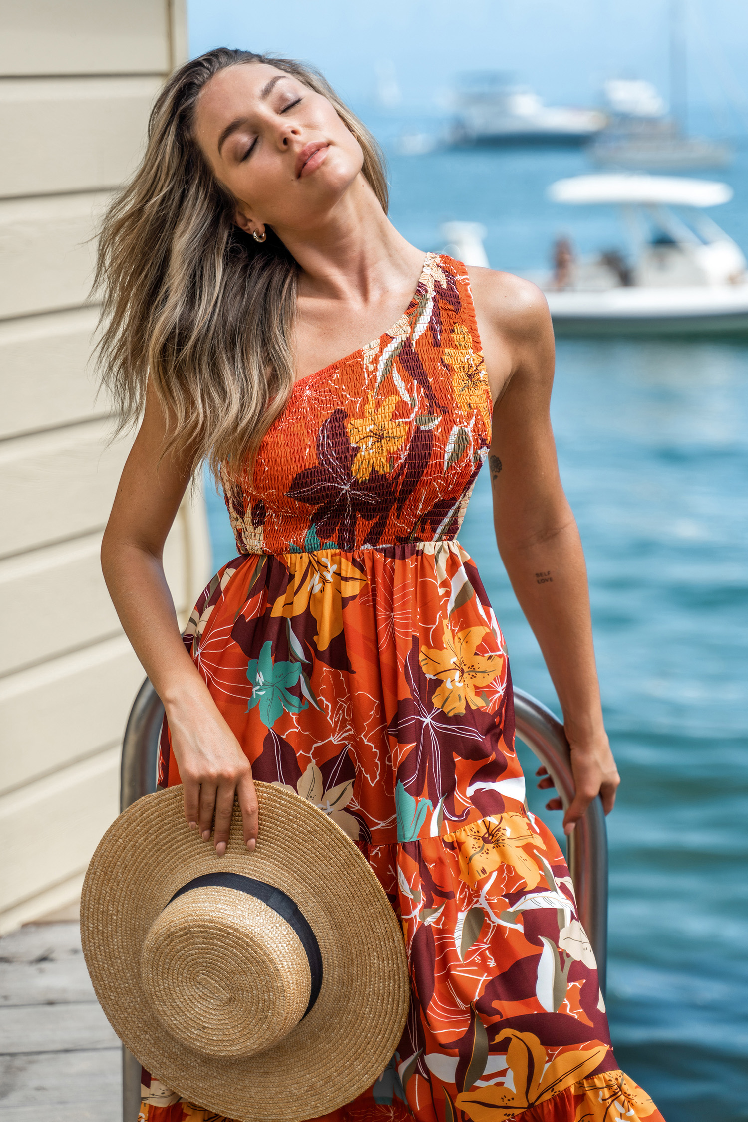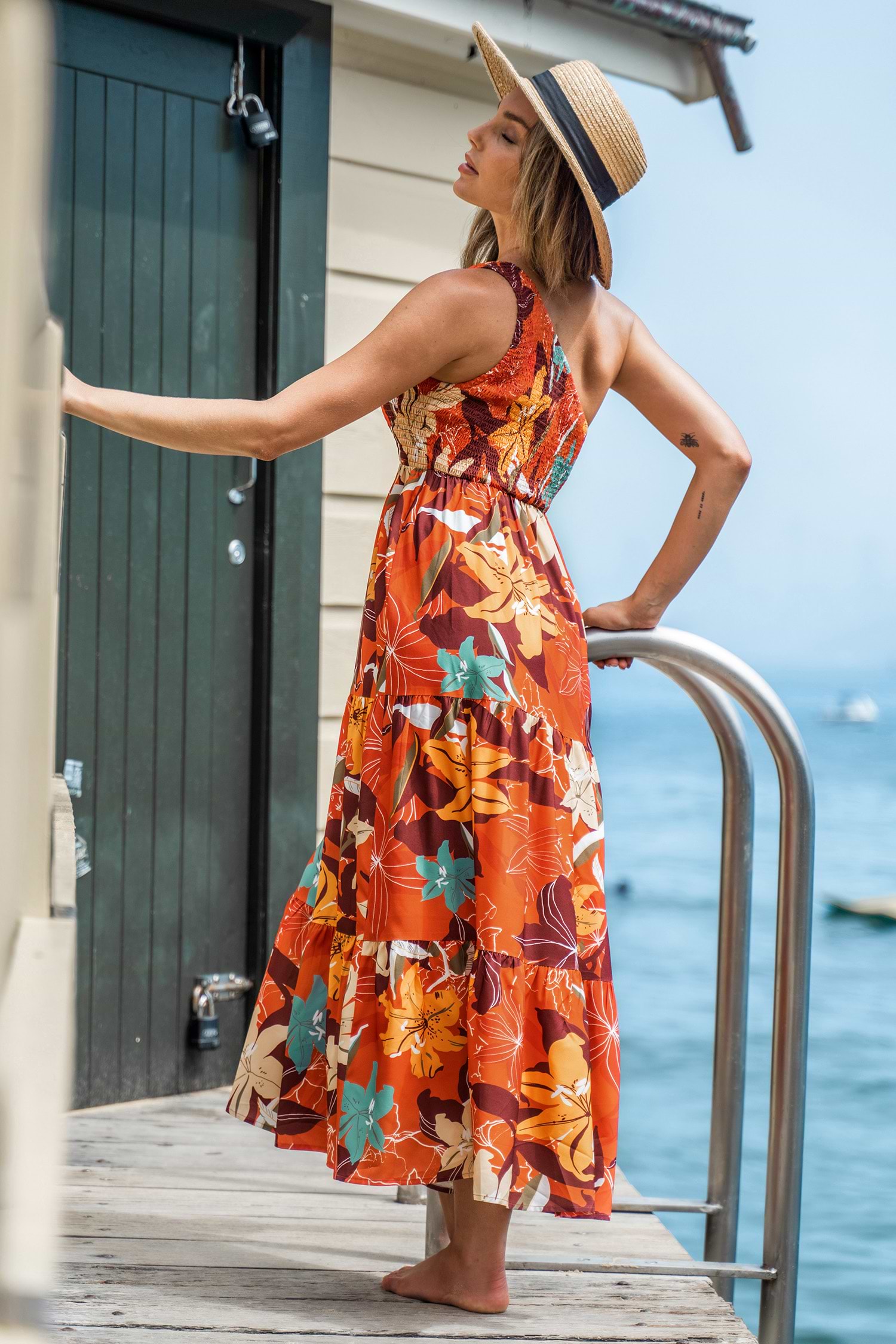 Floral One-Shoulder Smocked Maxi Dress