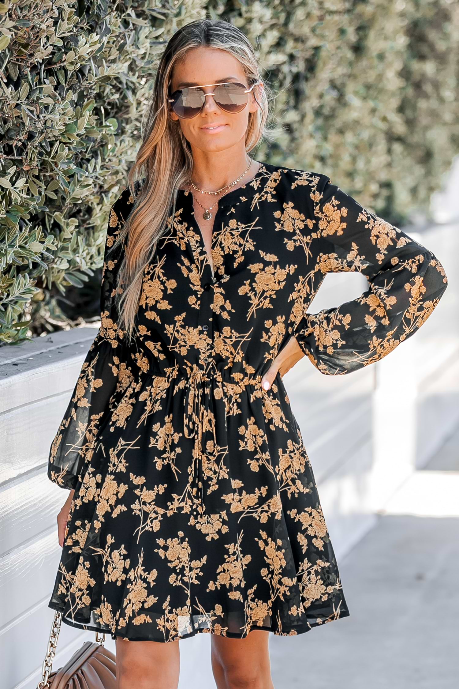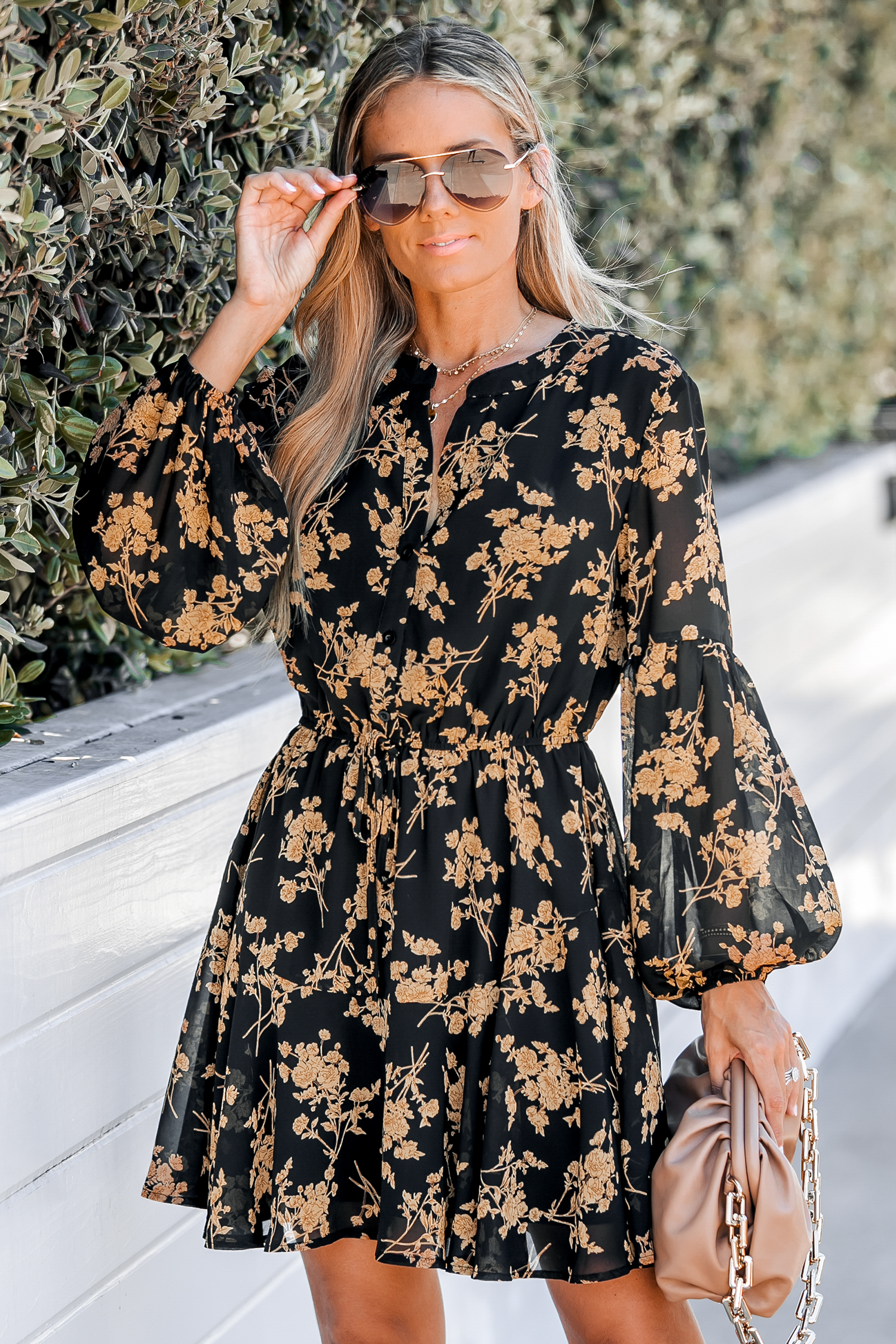 Floral Print Button-Front Mini Dress