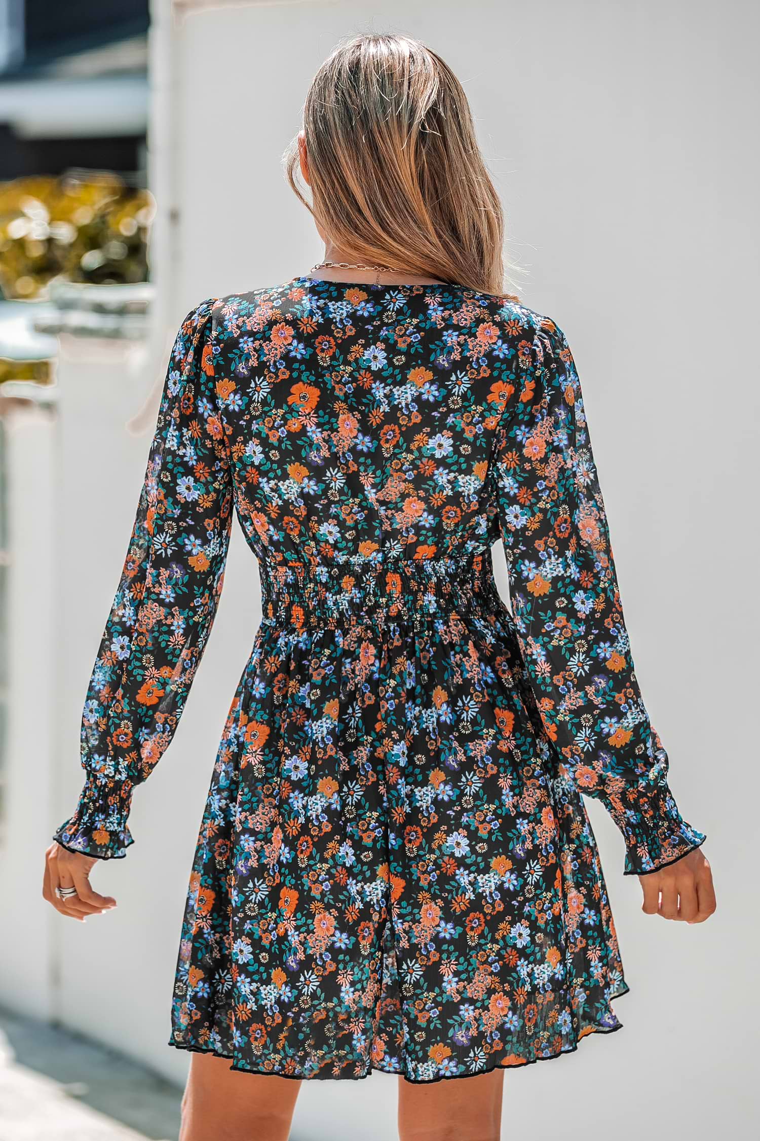 Floral Print Smocked Mini A-line Dress