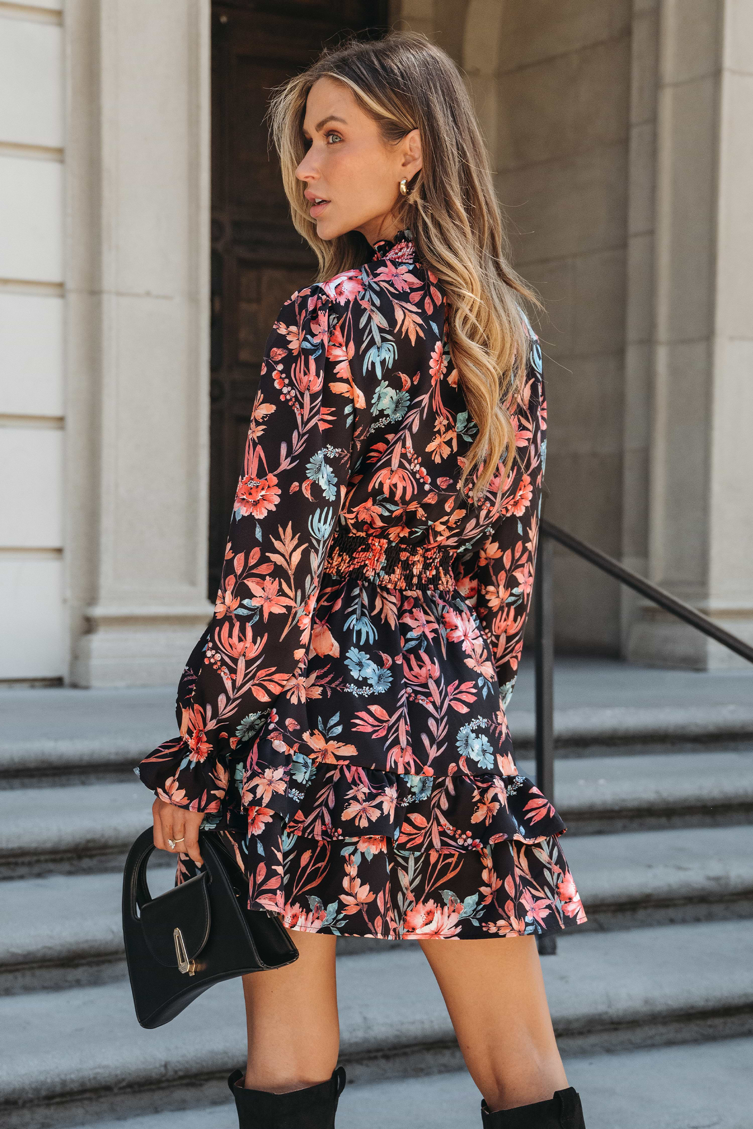 x JoJo Midnight Black Long Sleeve Asymmetrical Dress