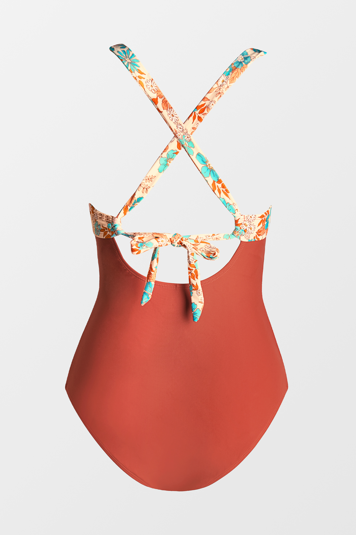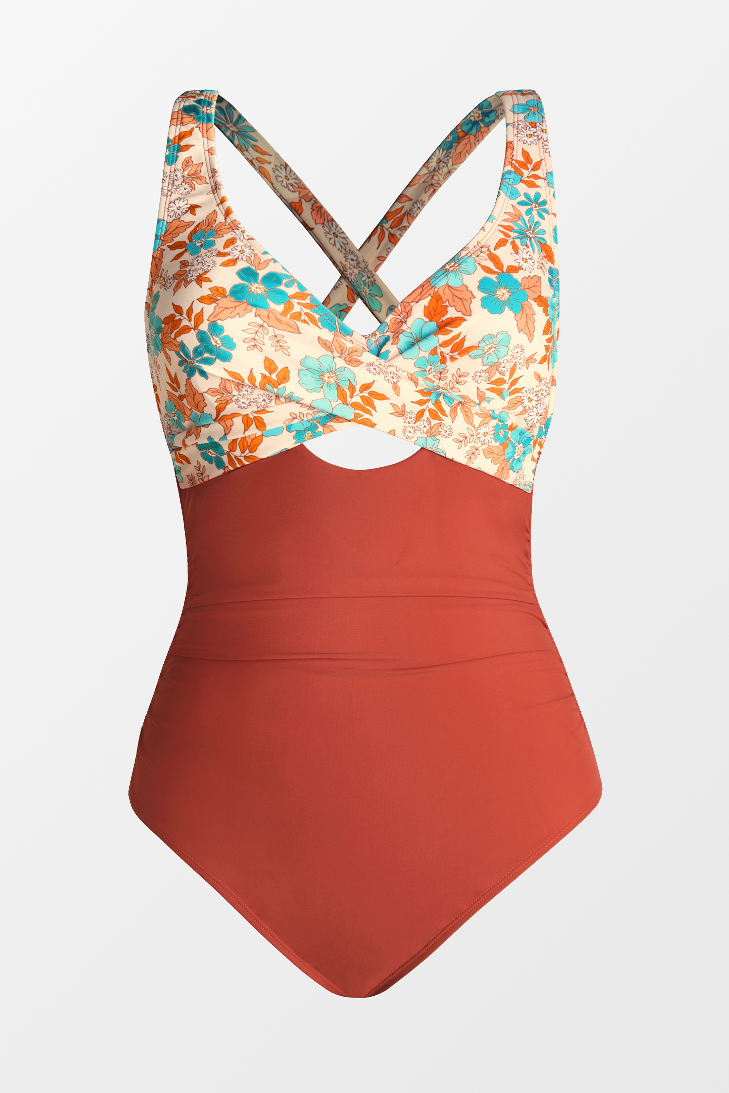HomeFloral Print Tie Back Ruching One Piece Swimsuit