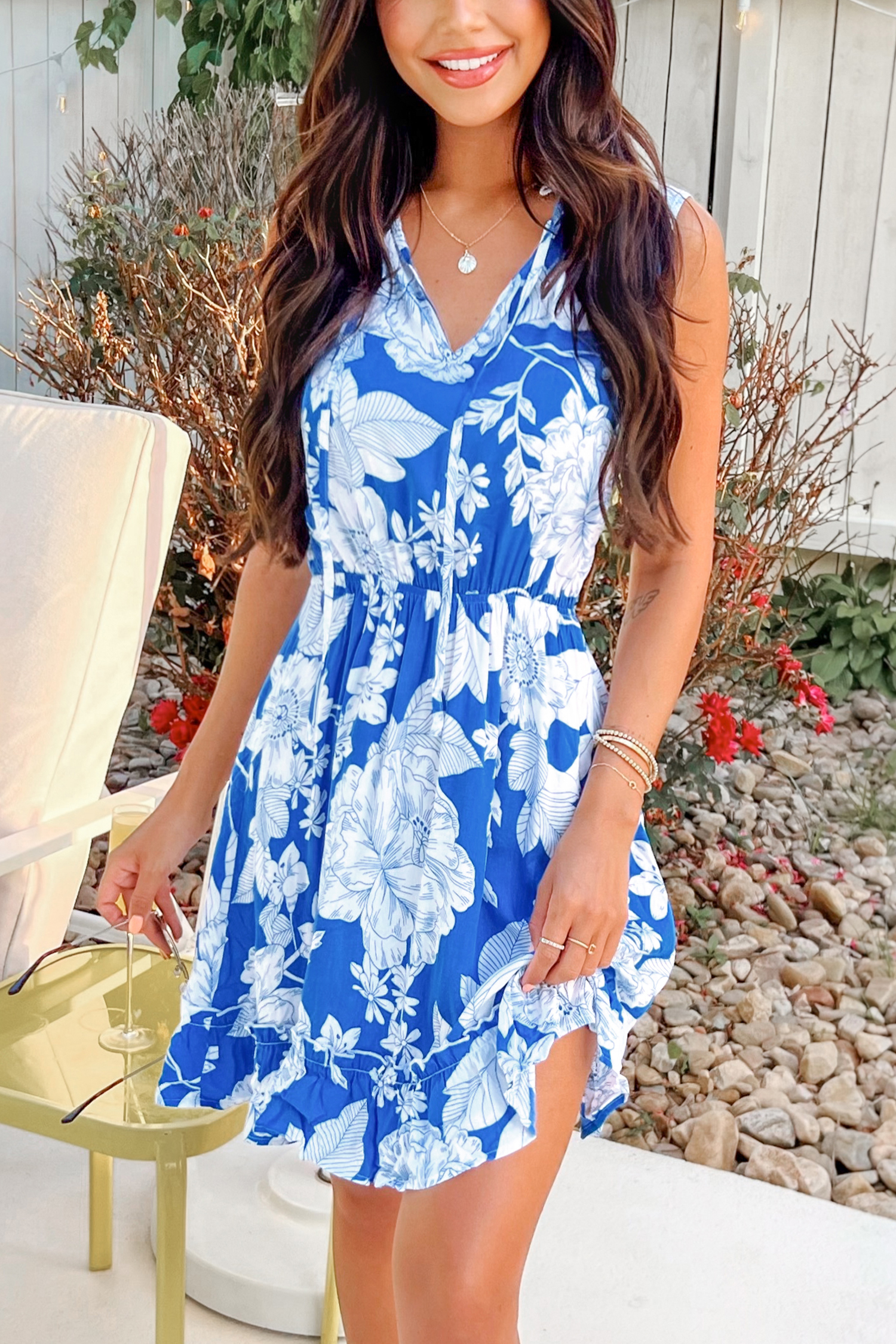 HomeFloral Print Tie Front Ruffled Mini Dress