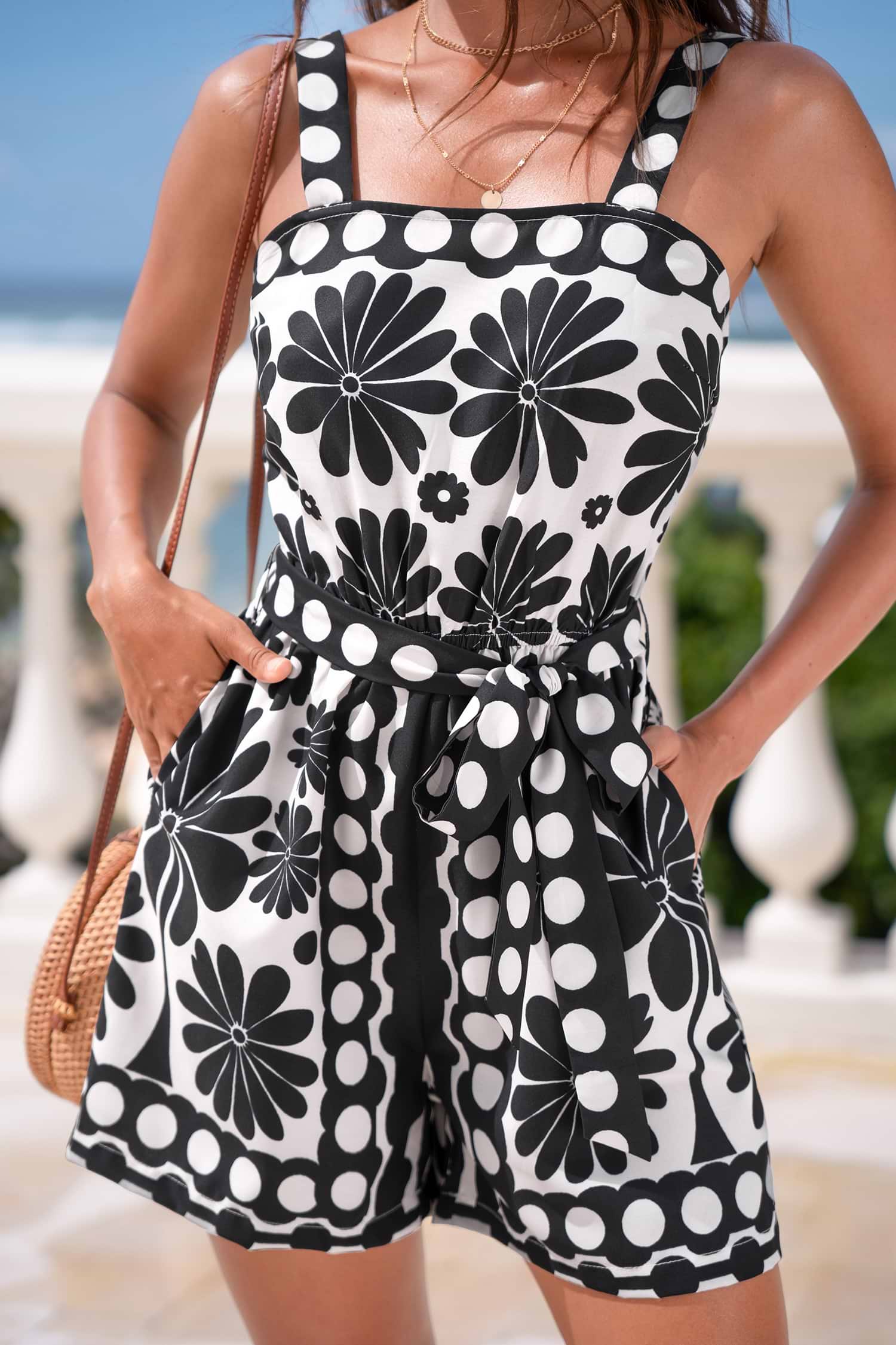 HomeFloral Square Neck Straight Leg Romper