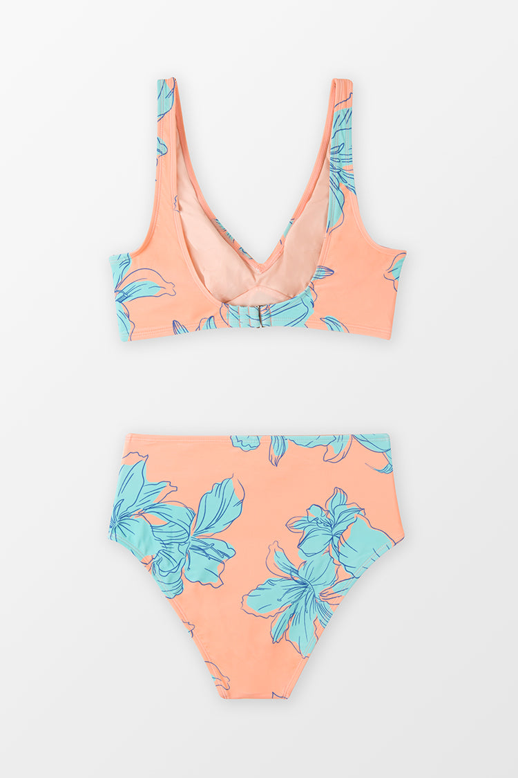 Floral Wrap Front Bralette & Shirred High Waist Bikini Set