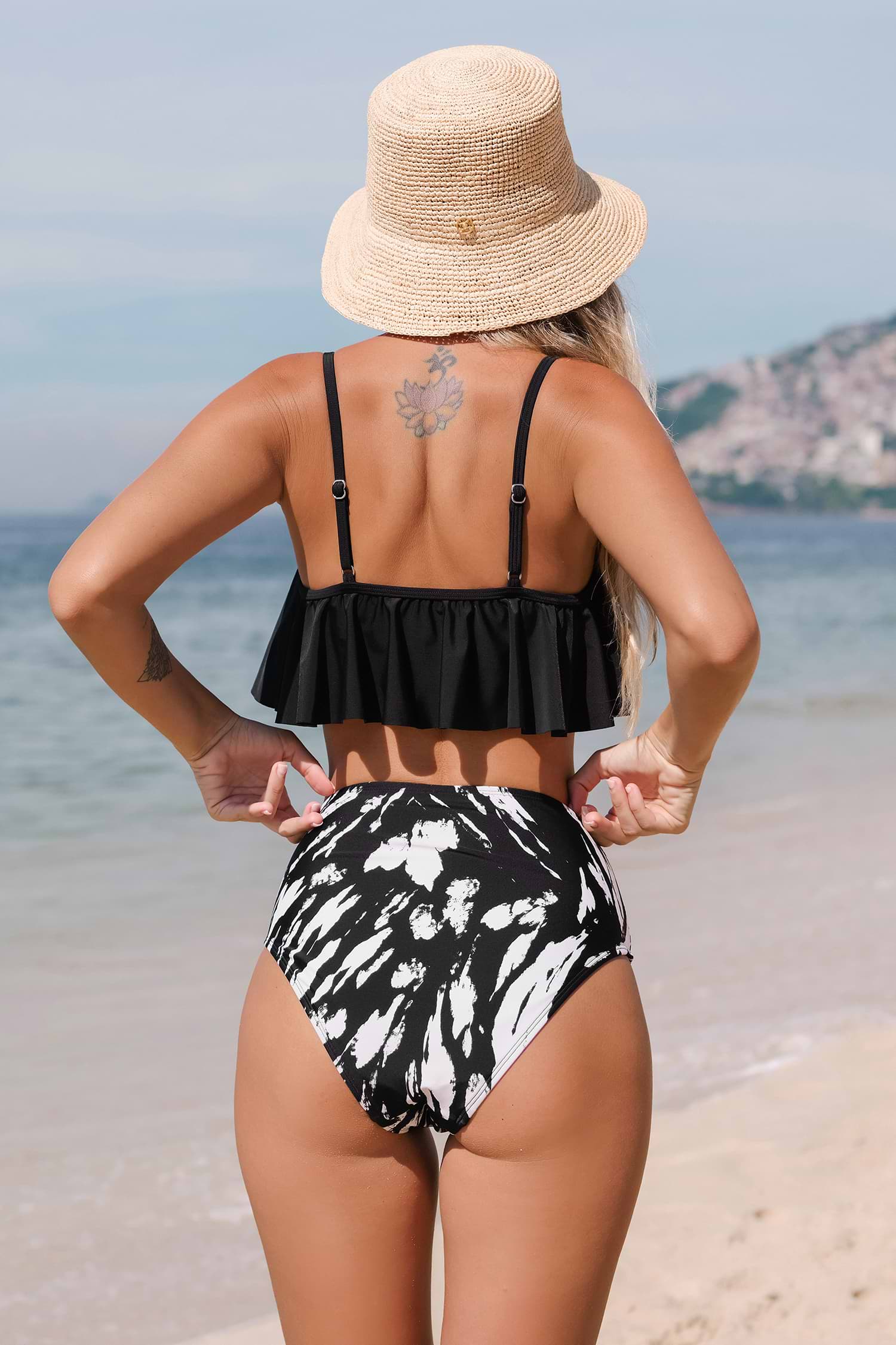 HomeFlounce Tankini & Abstract Print High Waist Set