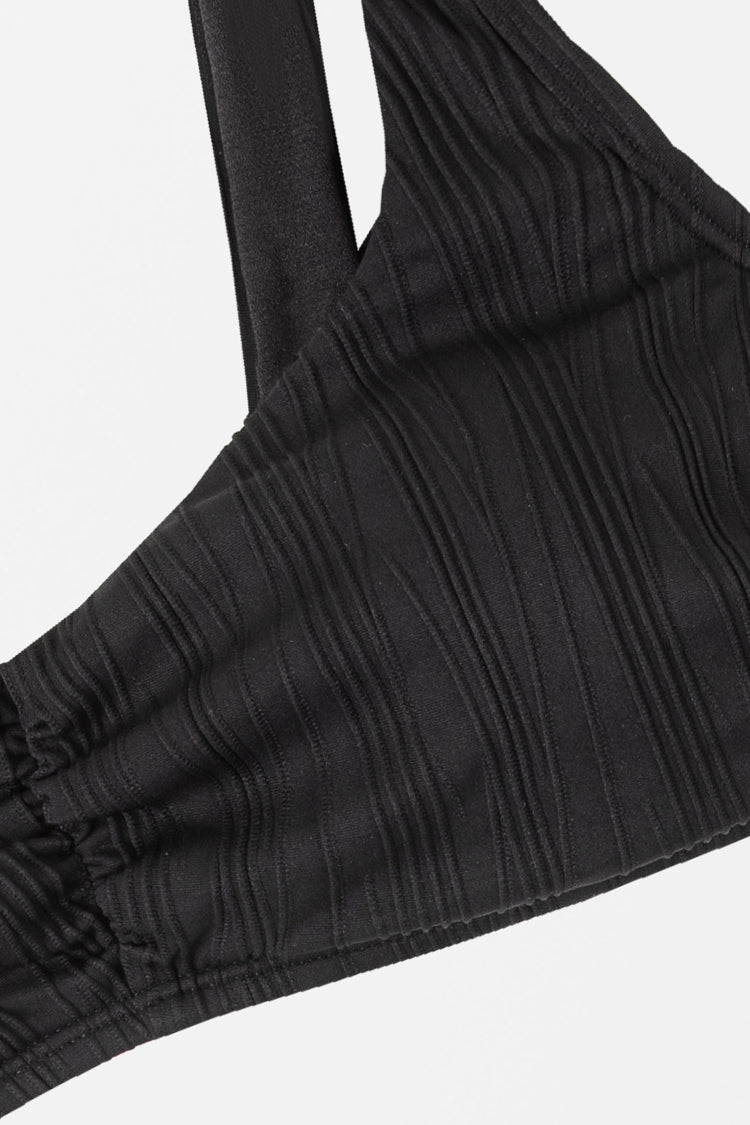 Flowing Lines Ruched V-Neck Bralette Bikini Top