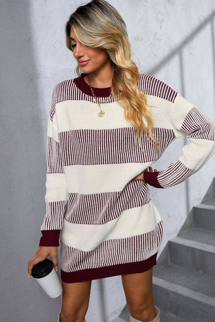 Flying To The Moon Striped Drop-Sleeve Sweater Dress
