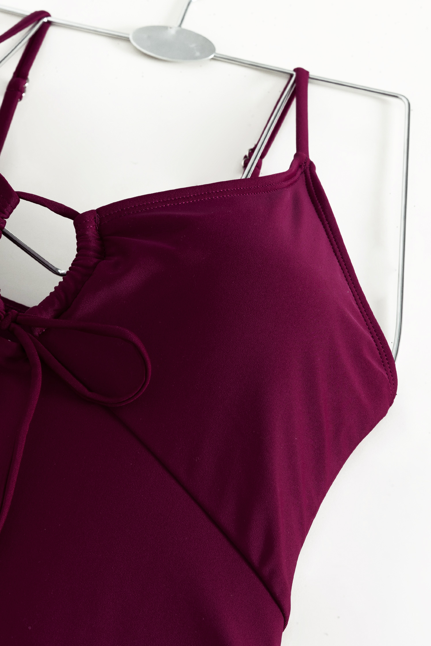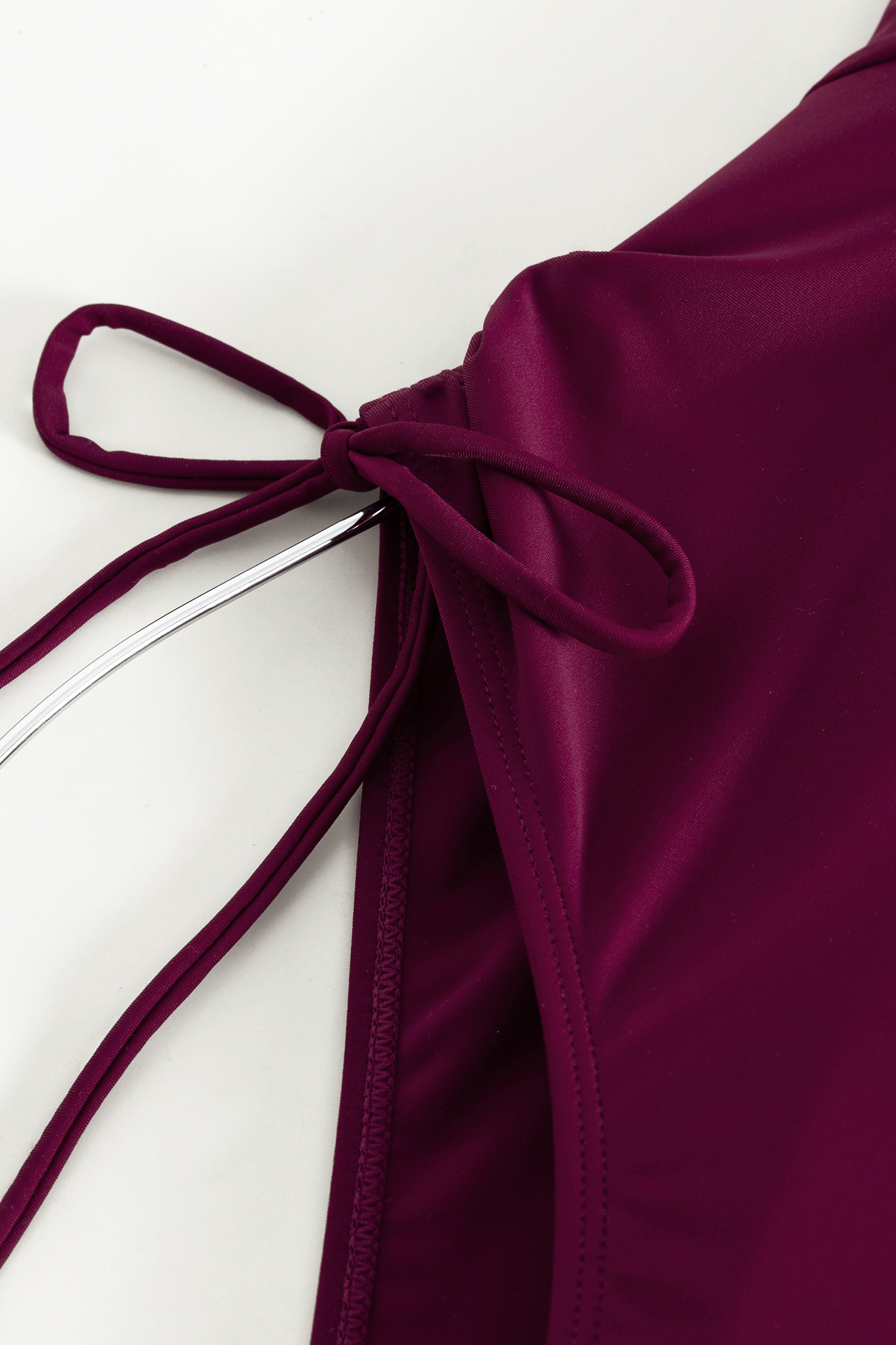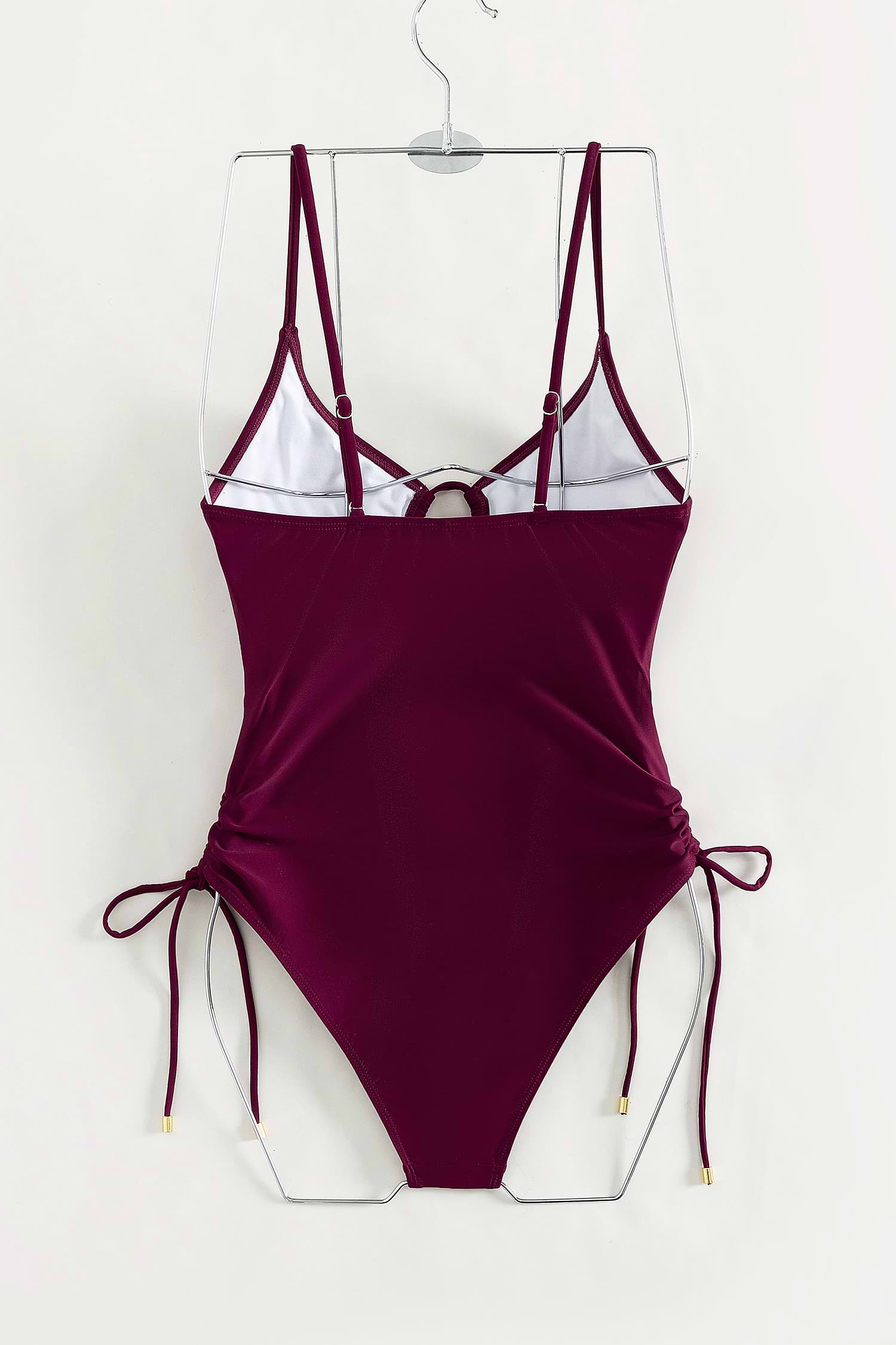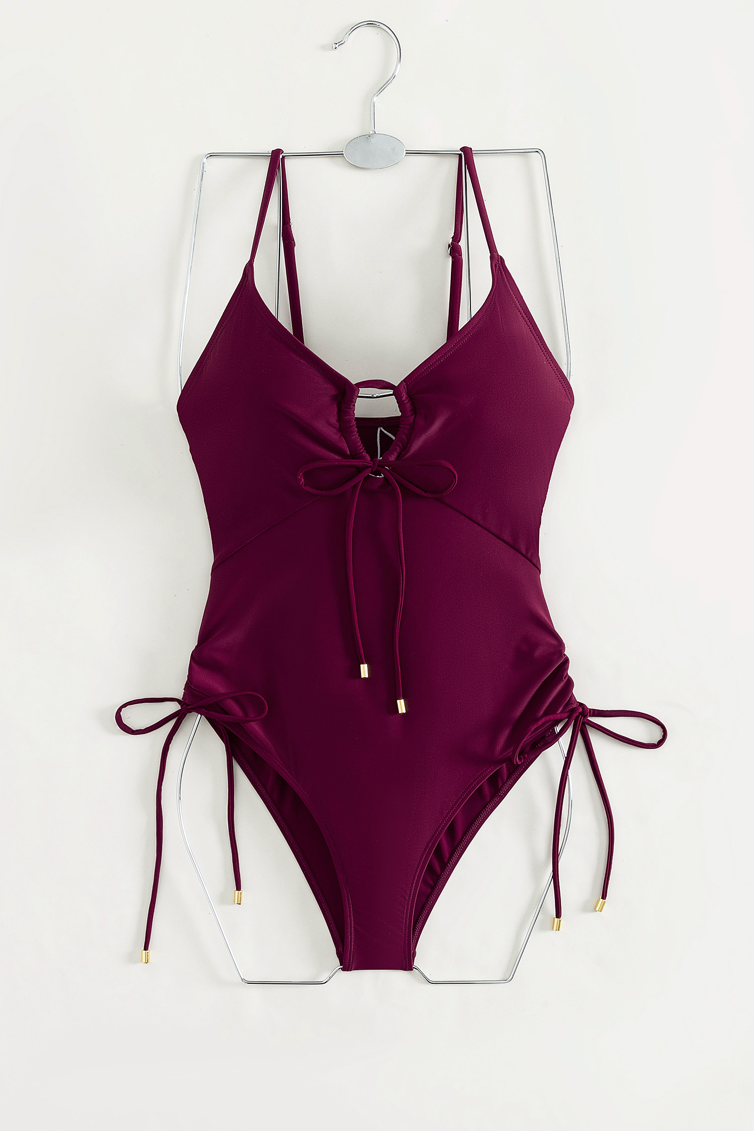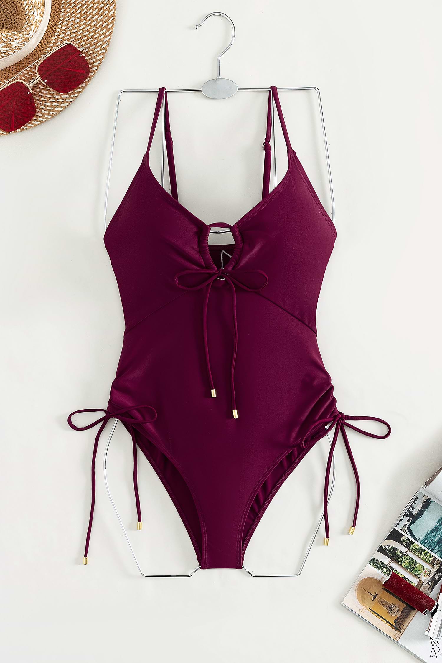 Fuschia Tunneled Ruched Drawstring One Piece Swimsuit