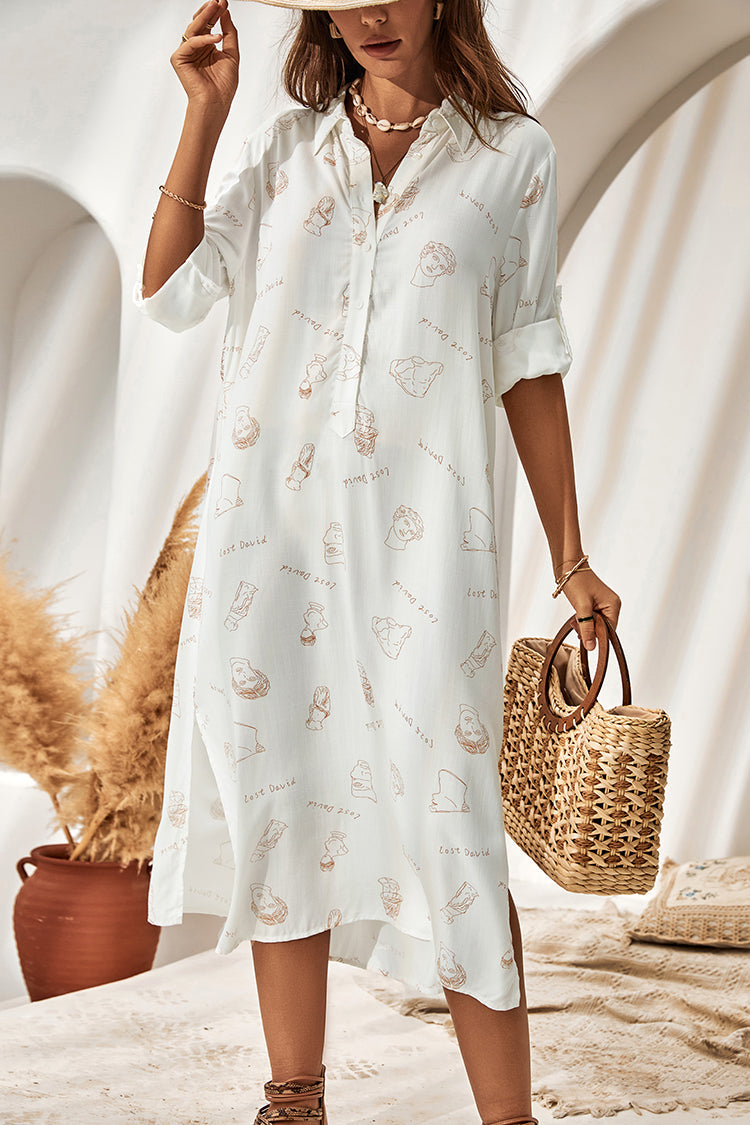 Gabriela Long Sleeve Loose Waisted Button Shirt Dress