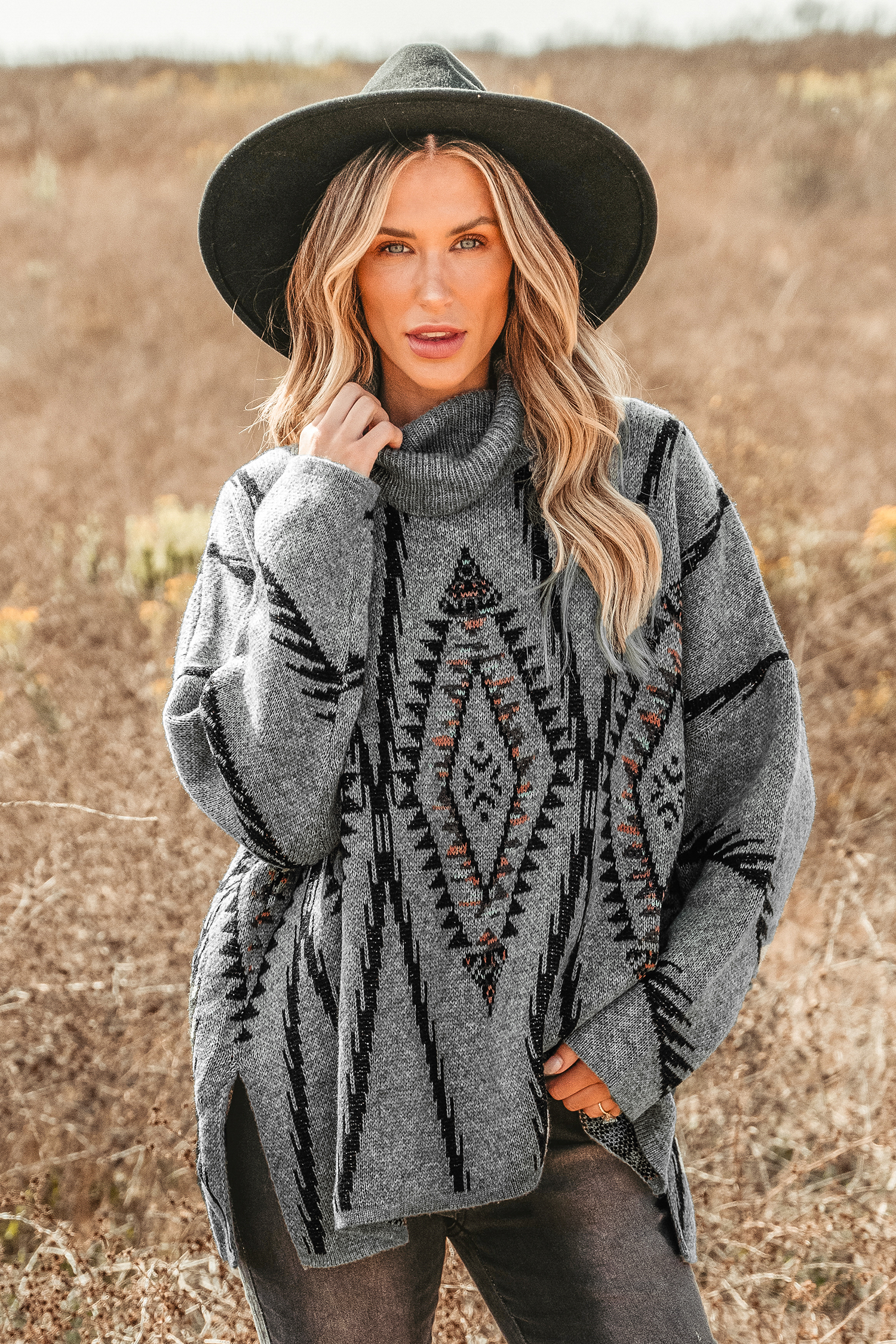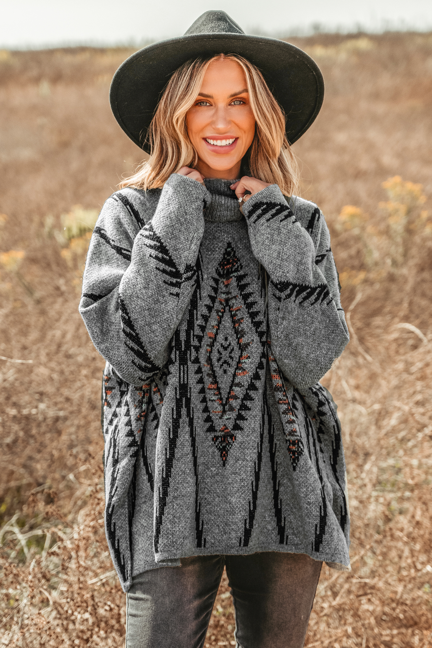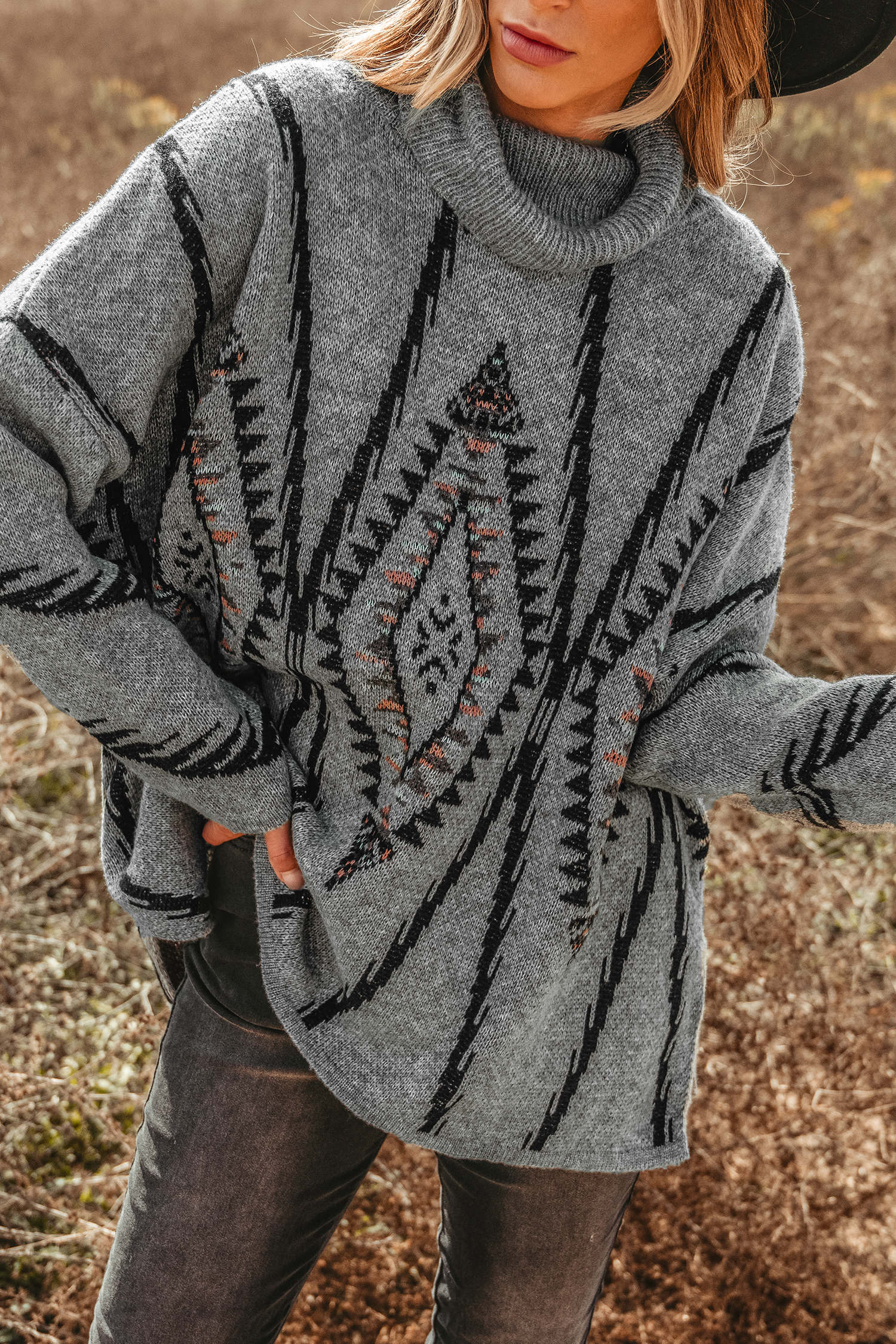 Geo Print Turtleneck Sweater Dress