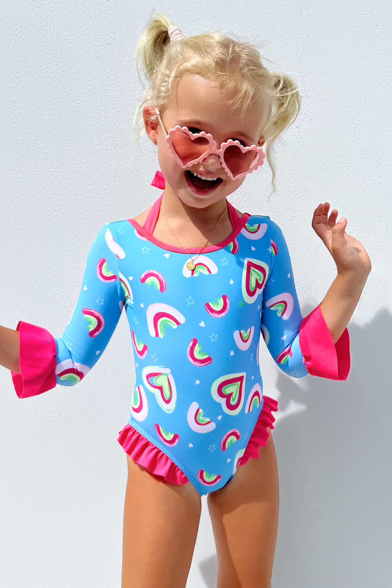 Girls Heart Shaped Fondant Rashguard One Piece Swimsuit