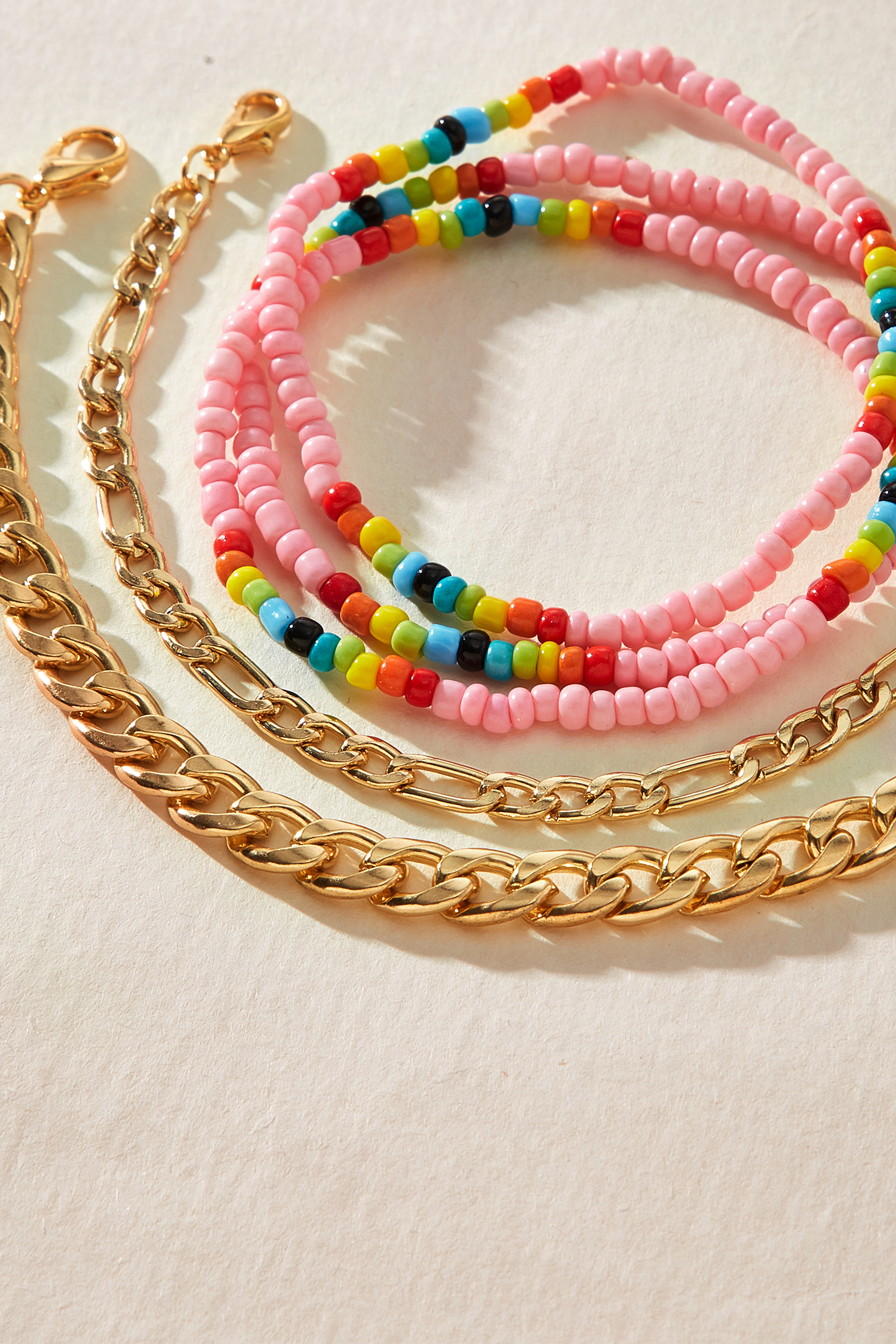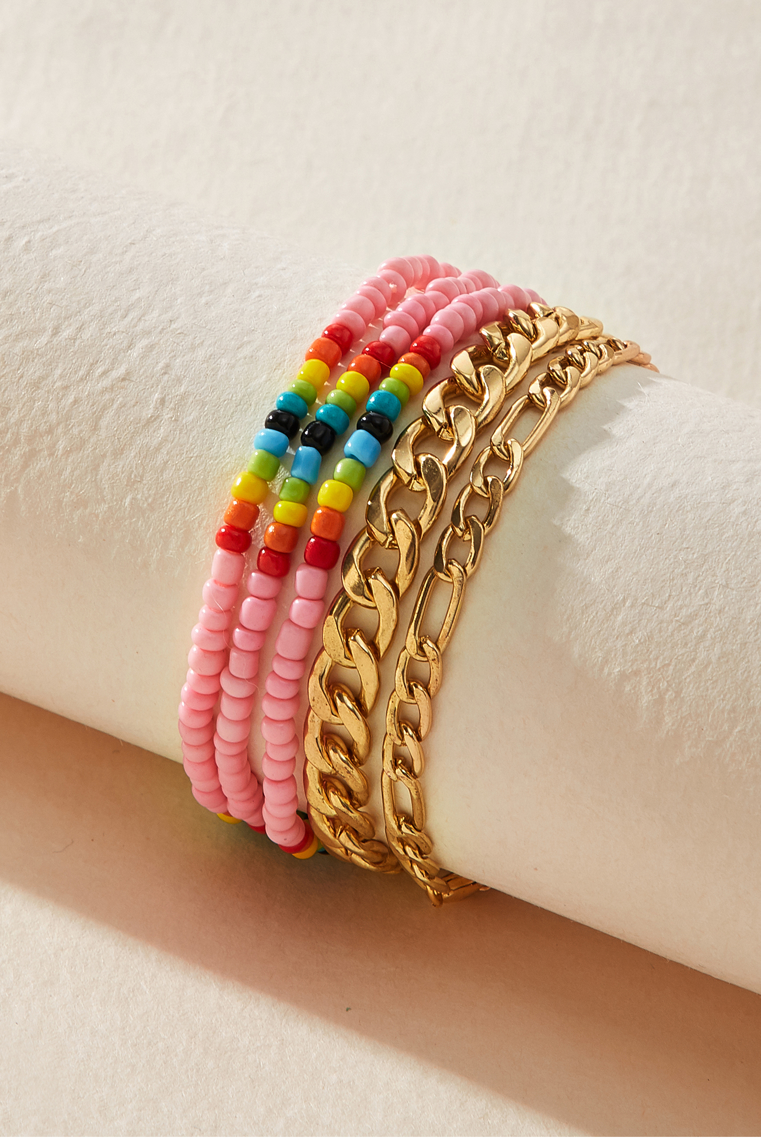 HomeGold-Tone Chainlink & Rainbow Beads Bracelet Set