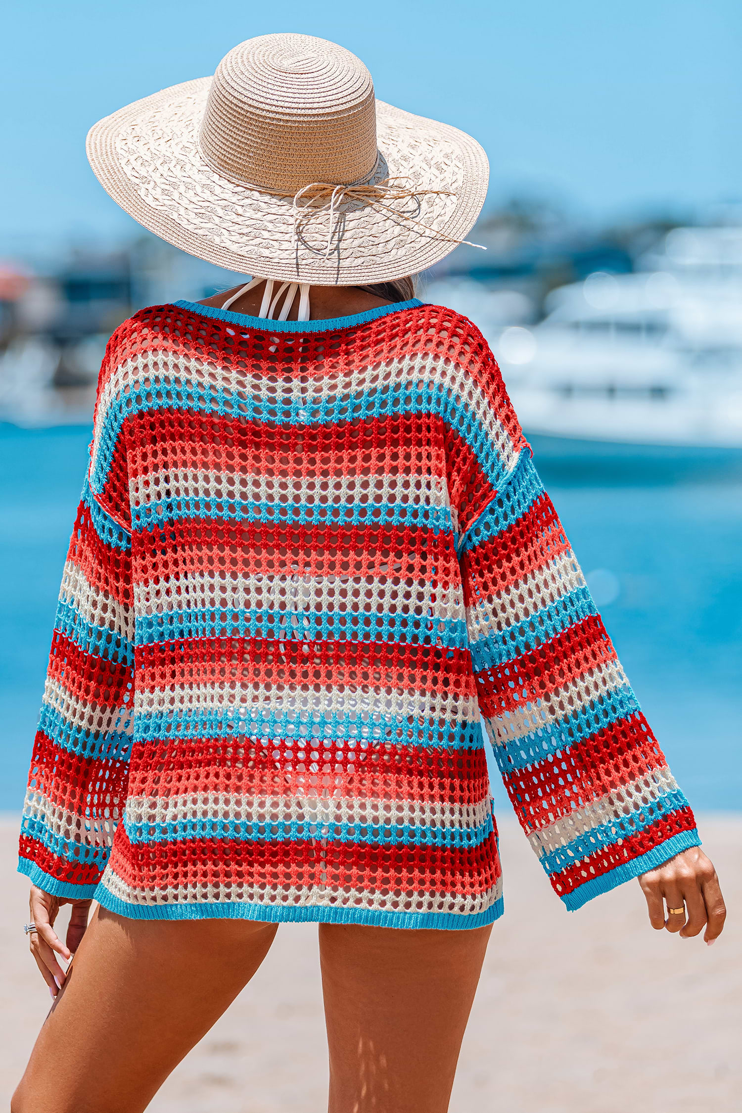 The Good Energy Striped Cover-Up Top brings color and comfort in equal measure! With its soft knit feel, round neckline, and long sleeves, it’s the perfect layer for beach days and beyond.