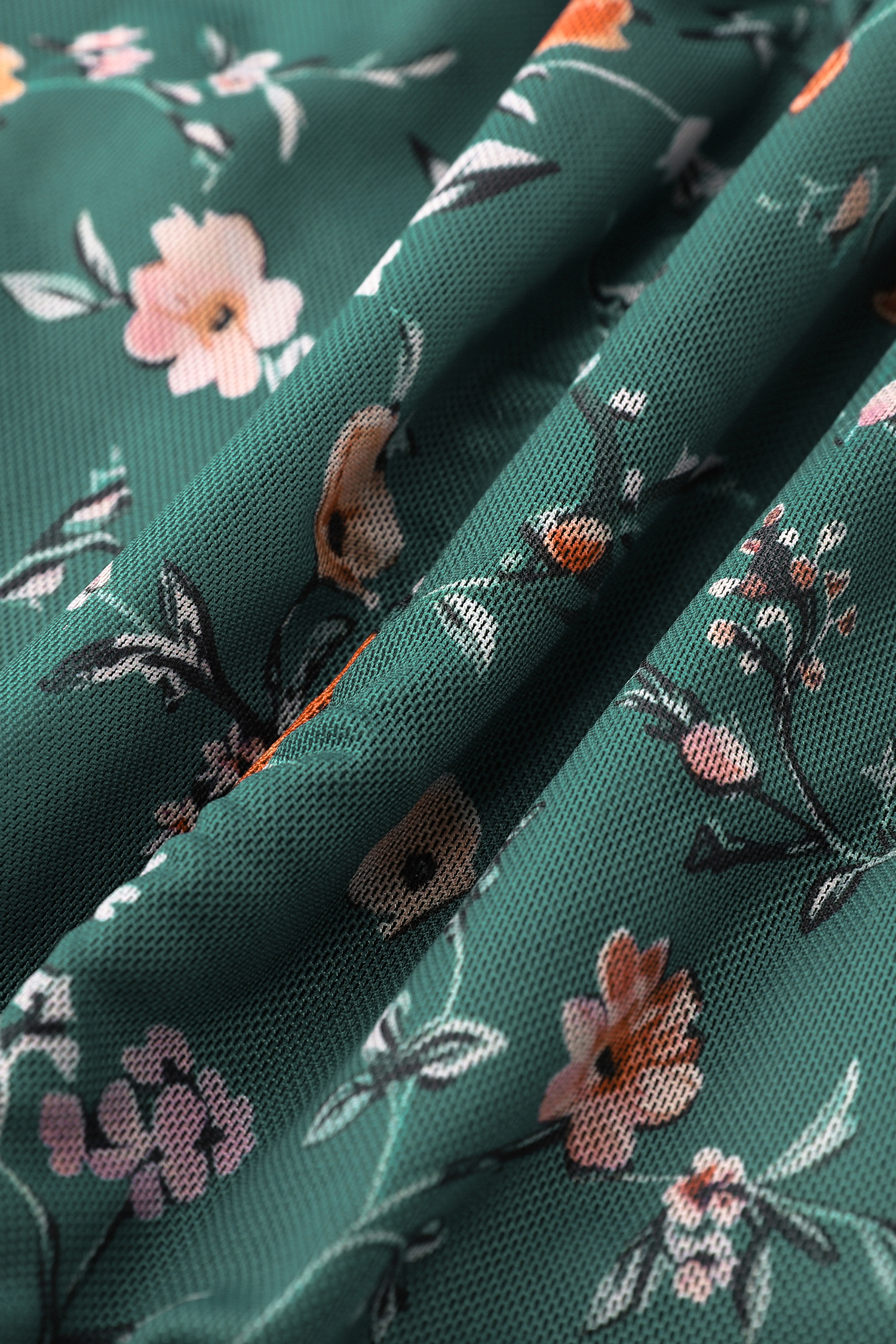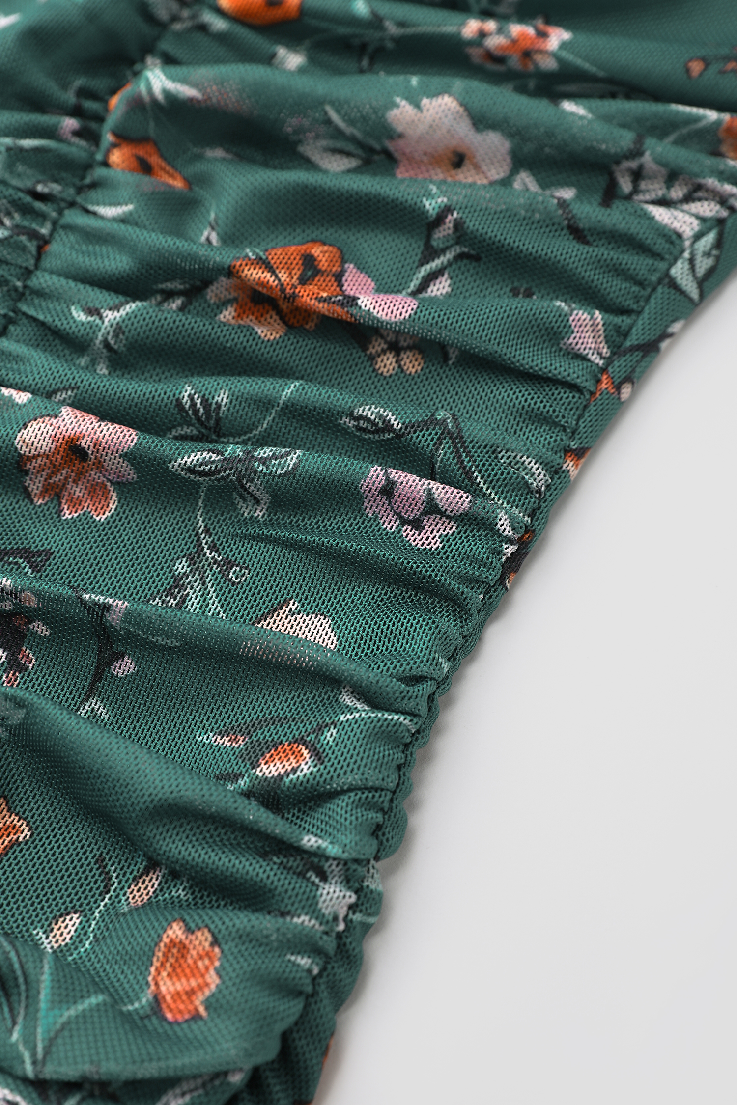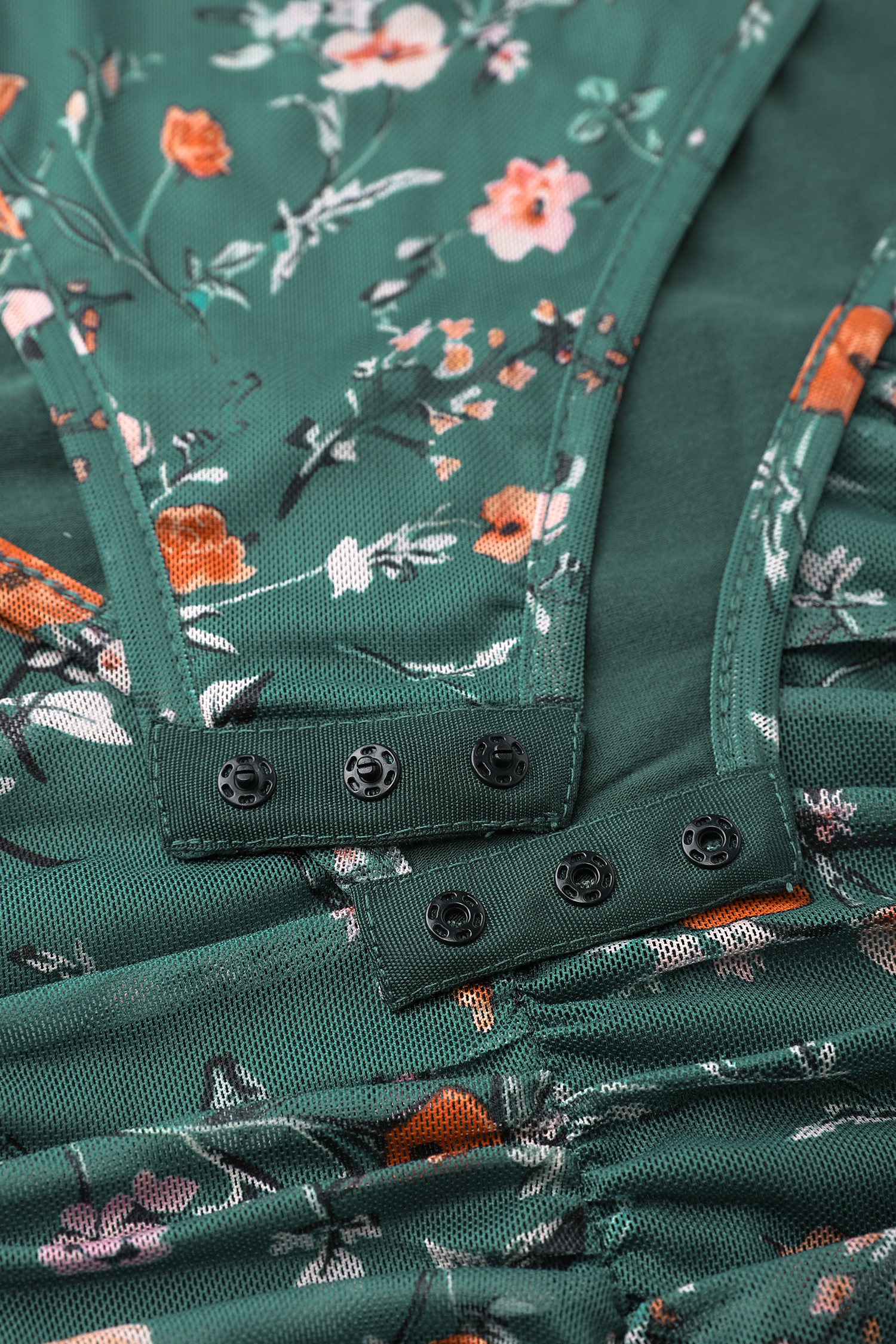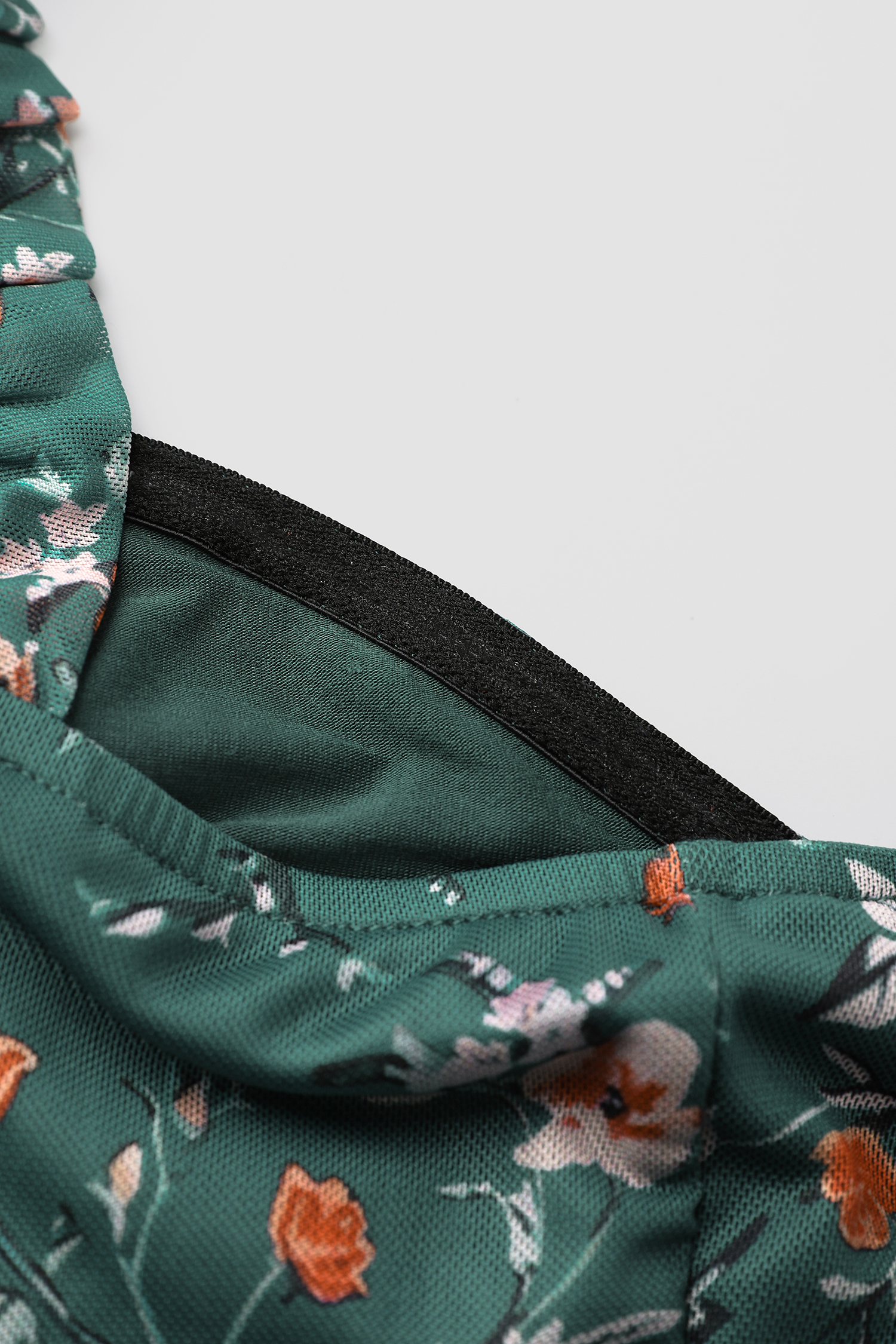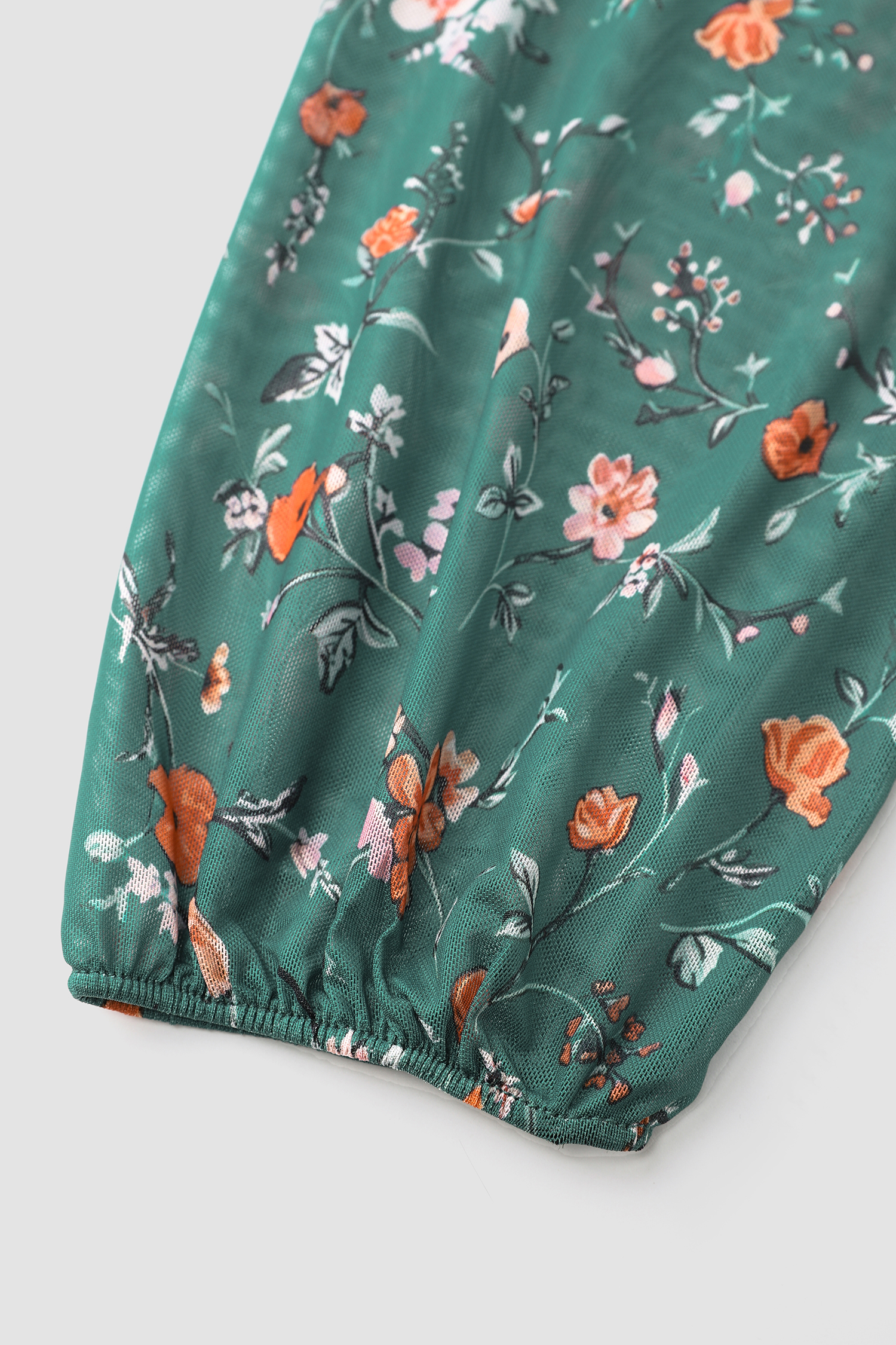 Green Floral Diamond Neck Blouson Sleeve Bodysuit