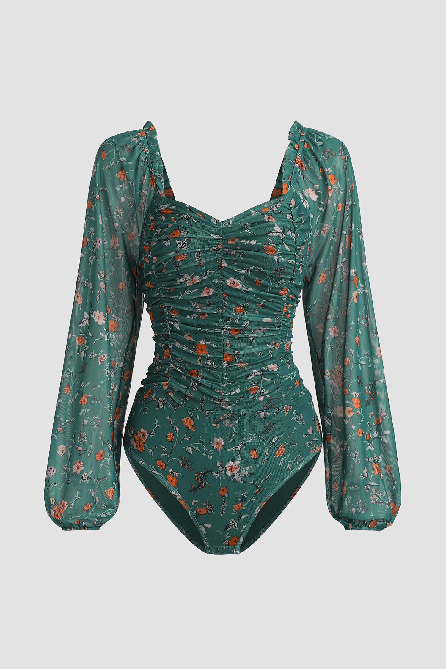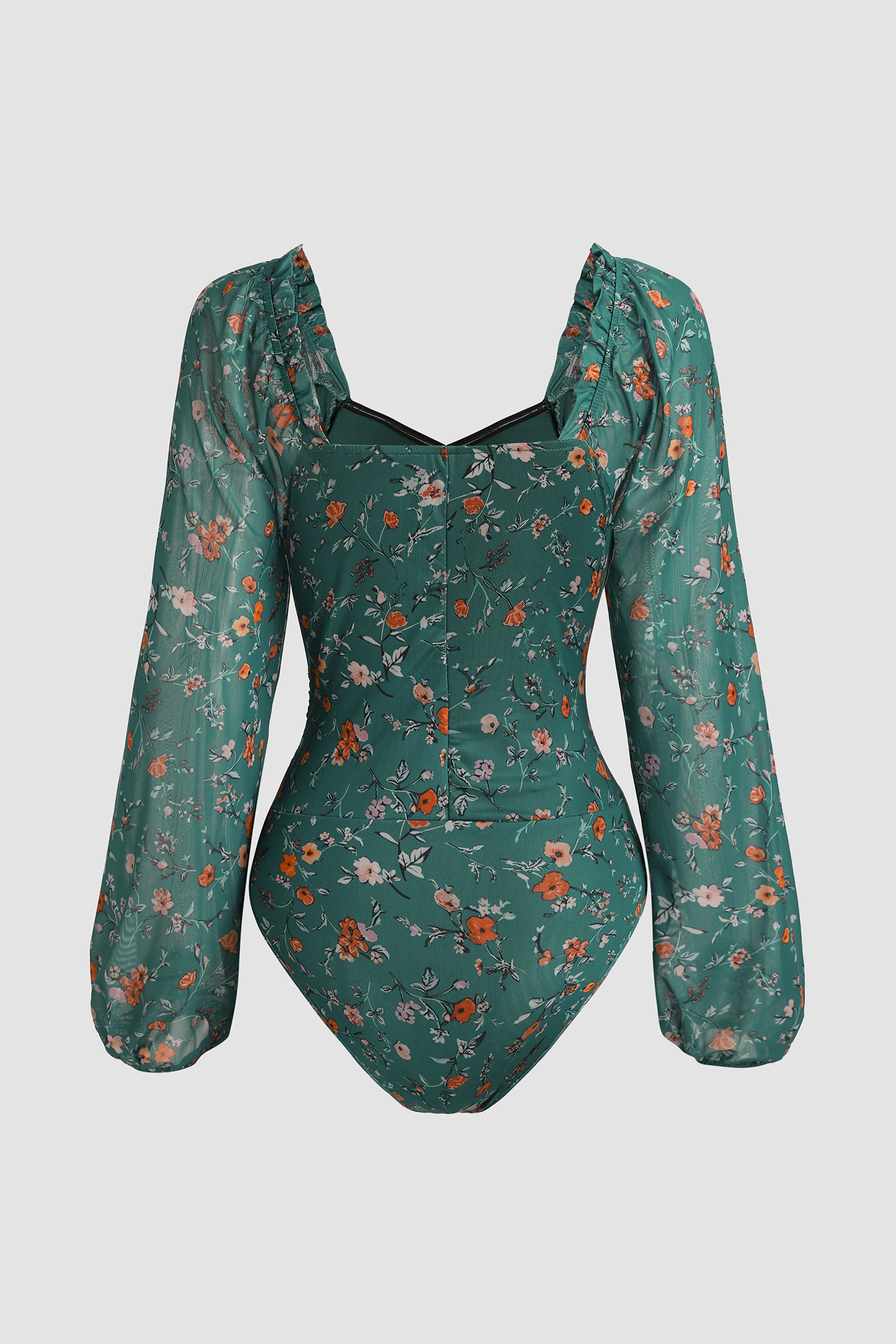 HomeGreen Floral Diamond Neck Blouson Sleeve Bodysuit