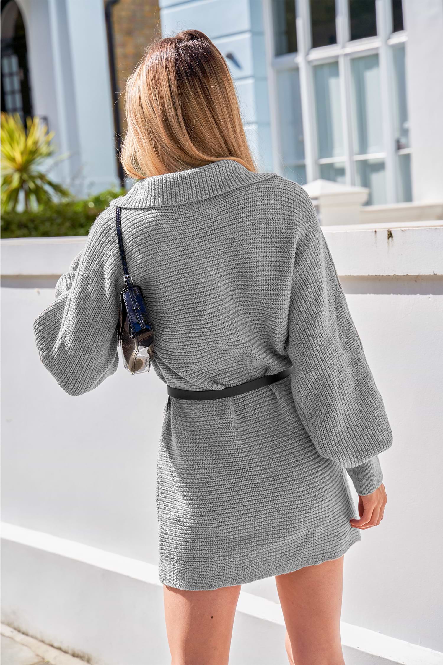 Elevate your style with this Grey Collared Dolman Sleeve Mini Sweater Dress! Its chic collar and cozy fit make it a fun choice for a relaxed, yet stylish look.