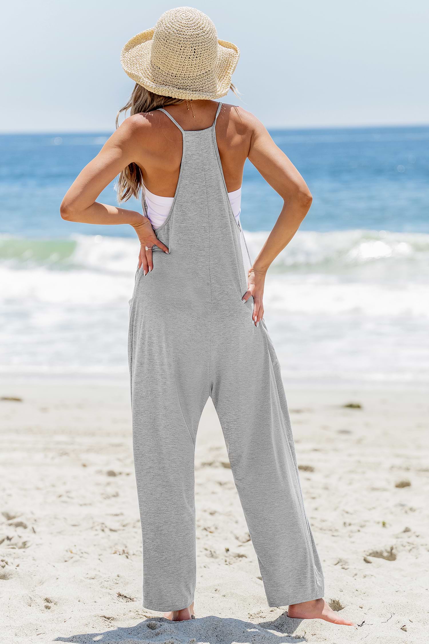 Grey Sleeveless Scoop Neck Loose Leg Jumpsuit