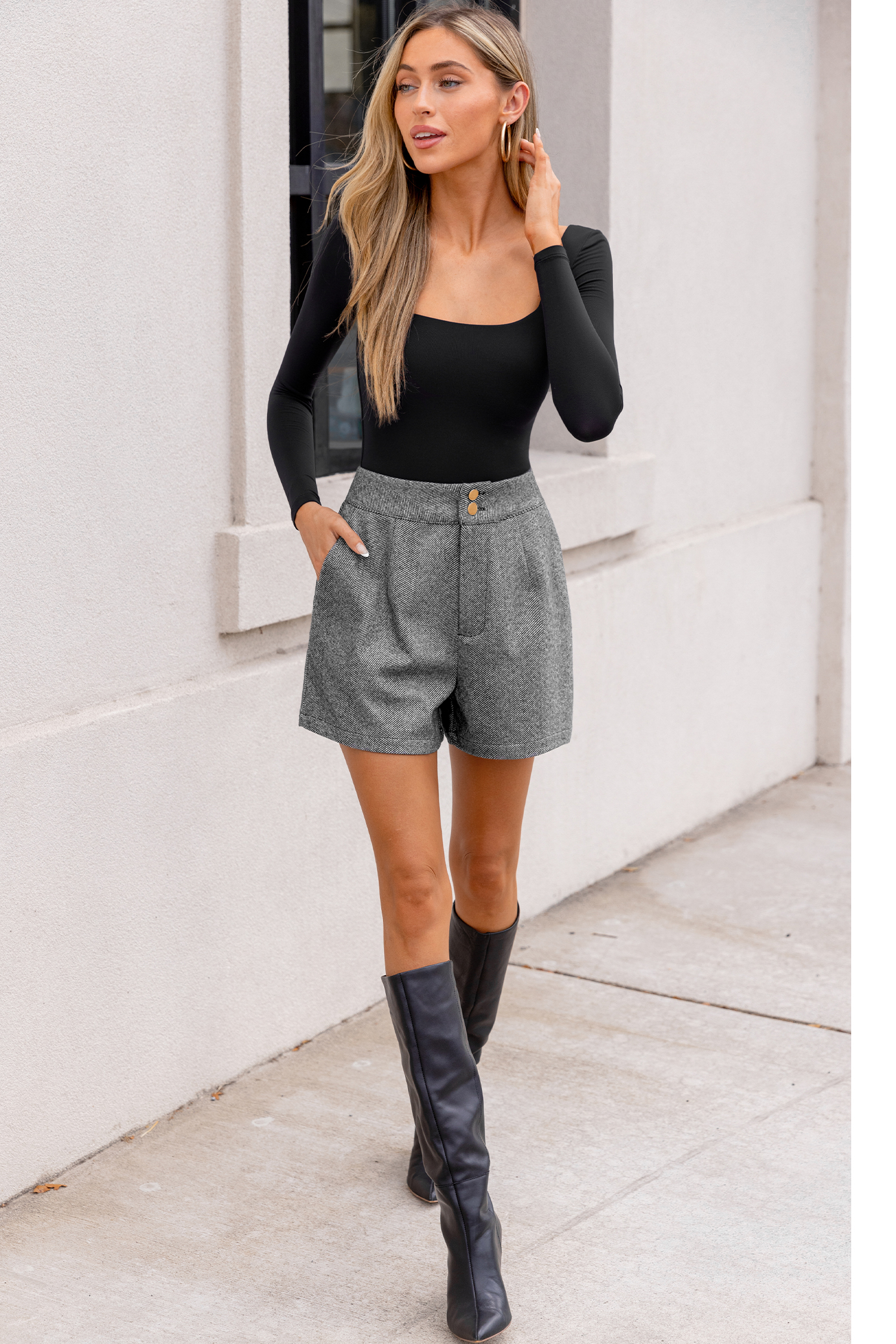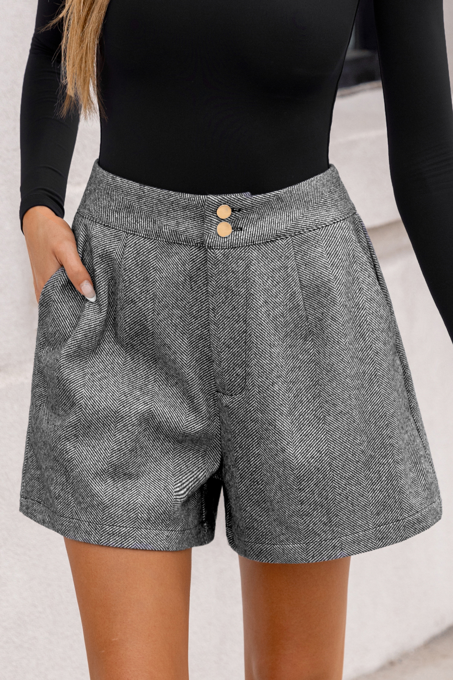 HomeGrey Straight Leg Herringbone Shorts