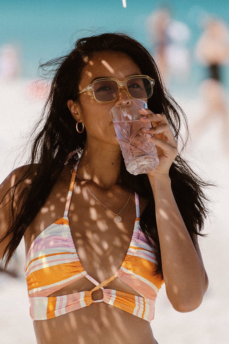 Happy Stripe Tunneled Cutout Bralette And Hipster Set