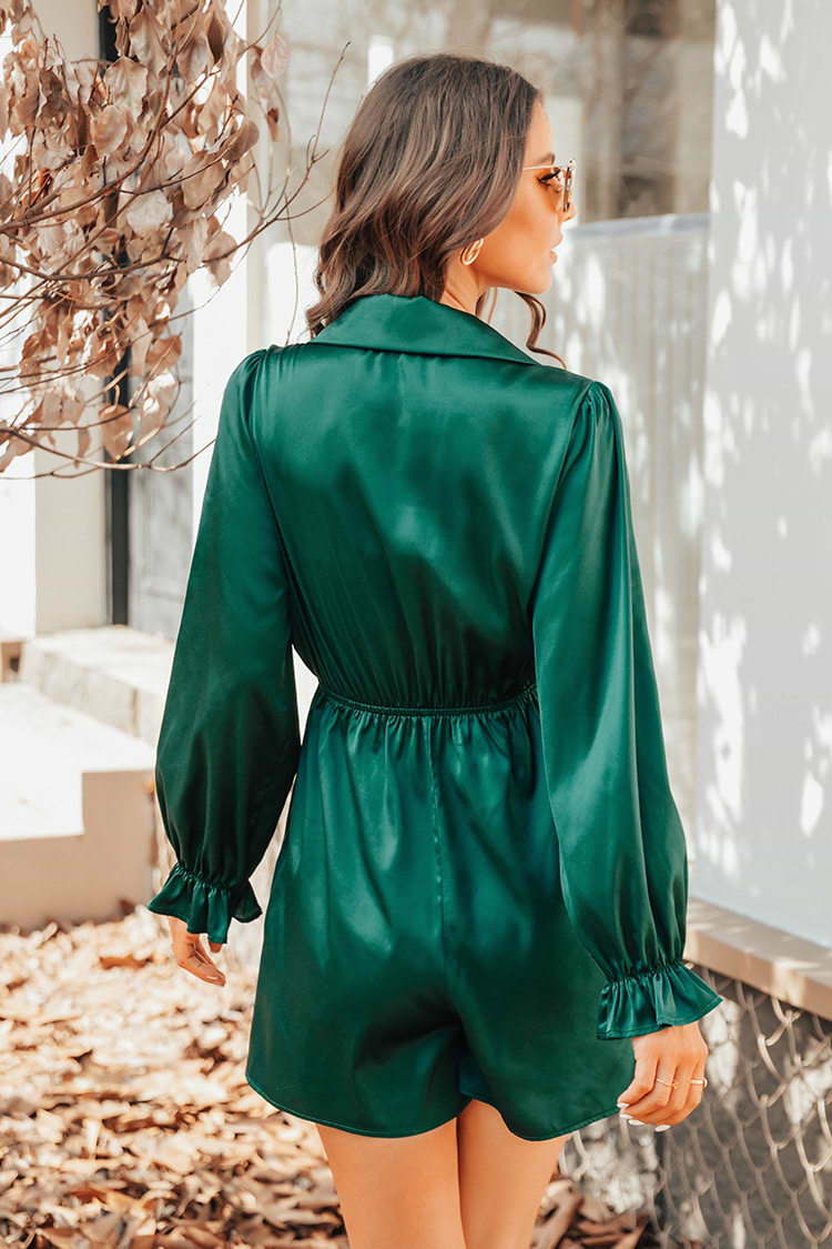 HomeHolidaze Satin Wrap Flounce Romper