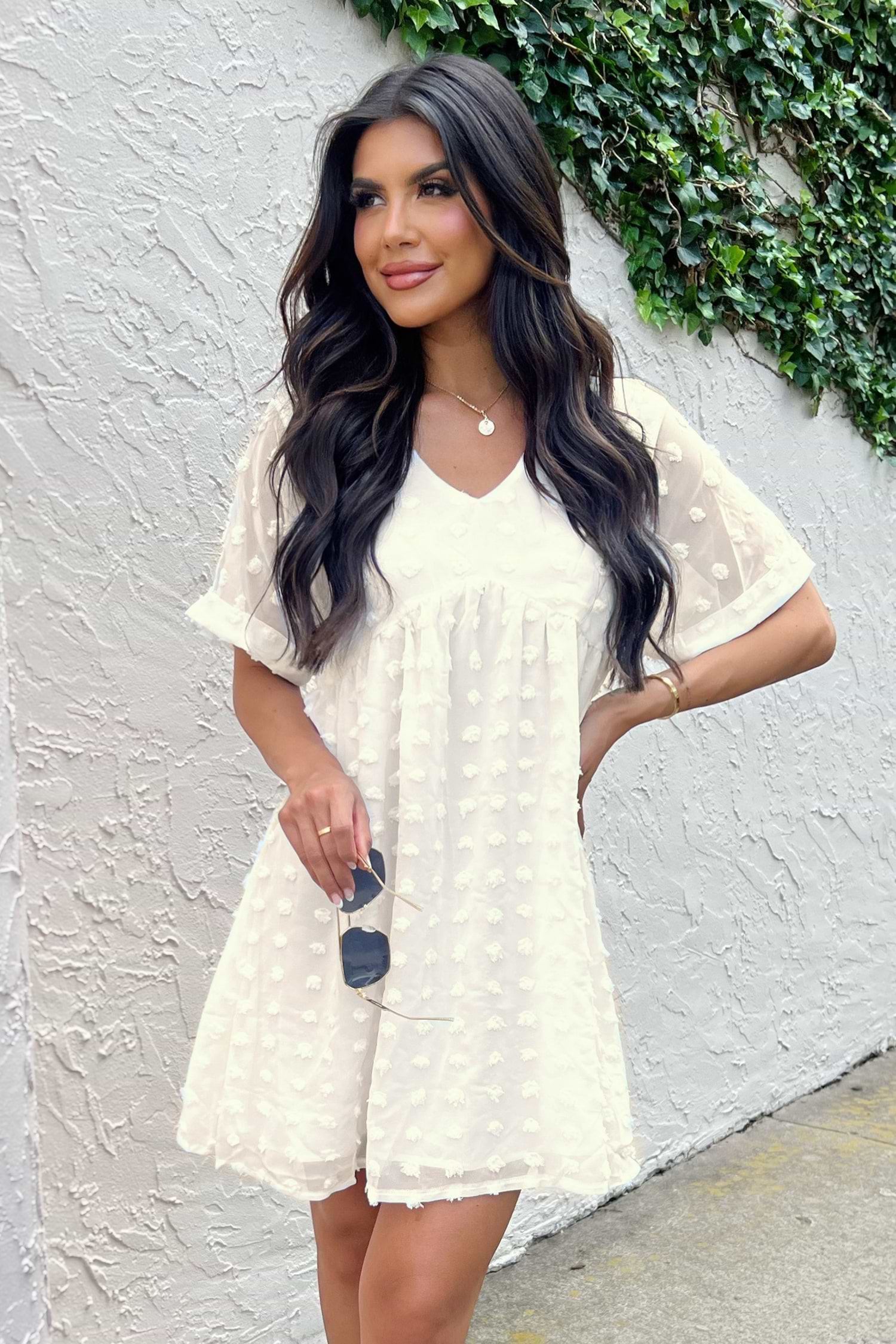 Honey Pot Clip Dot V-Neck Babydoll Dress