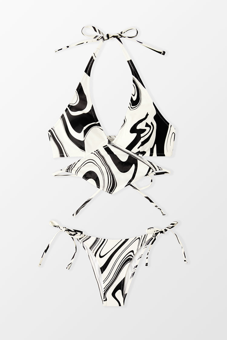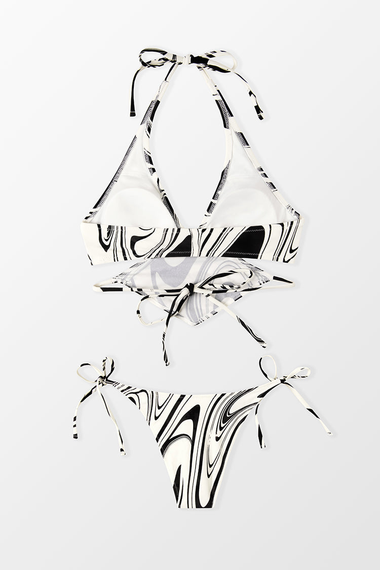 Ink Flow Cutout Halter And Side Tie Hipster Bikini Set